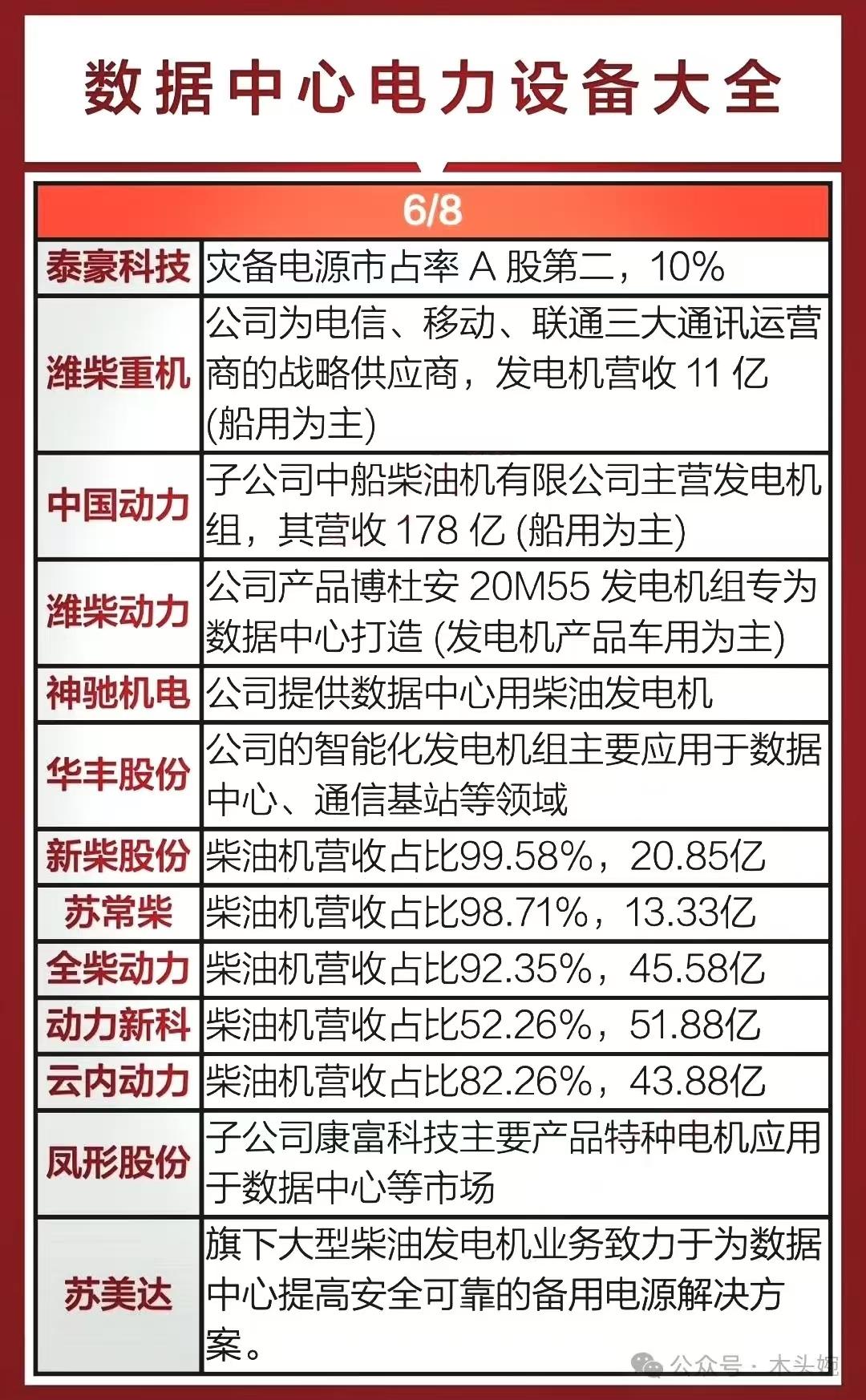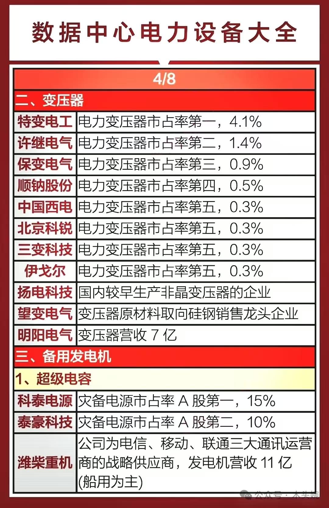 10月11日七部门重磅消息!加强新型信息基础设施建设,按需布局算力基础设施,加速算力与行业融合应用,还将攻关高端算力芯片,发展智能机器人等新一/代智能终端,算力基建及相关领域发展再迎政策东风! 算力的尽头就是“电力”,算力数据中心电力设备题材包括电源概念、超级电容概念、变压器概念、备用发电机概念、高压直流系统概念等等。算力数据中心电力设备概念低位龙头代表:许继电气、中国西点、苏美达、中国动力等等。 理财有风险入市需谨慎!国产算力概念股 算力板块机会 算力行业 国产算力产业链
