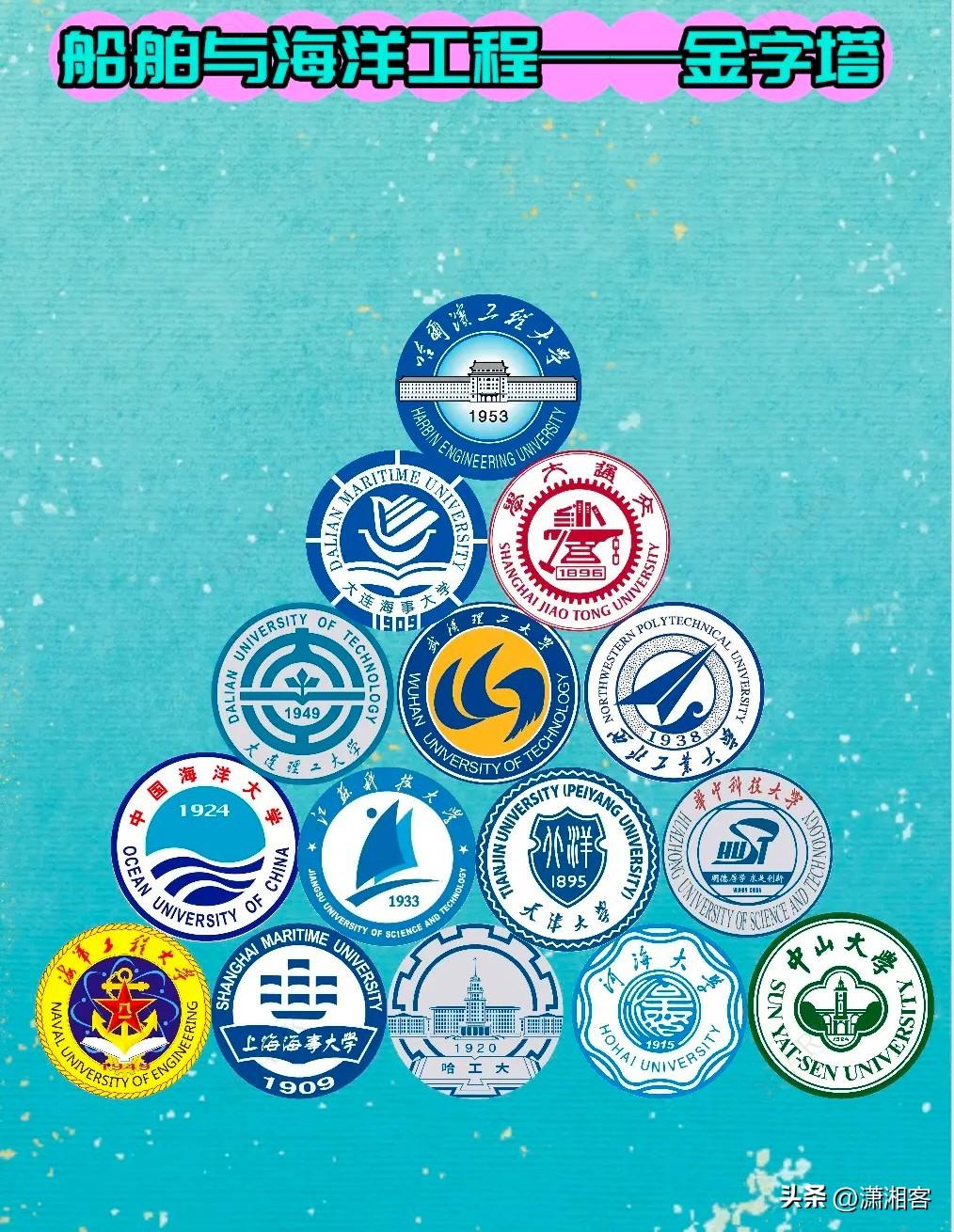 船舶与海洋工程15强高校,哈工程当之无愧的中国第1世界第1。 船舶与海洋工程15强高校按照排名先后顺序分别是:哈工程,上交大,大连海事,西工大,武汉理工,大连理工,中国海洋大学,江苏科技大学,天津大学,华科大,陆军工程大学,上海海事大学,哈工大,河海大学,中山大学。 不得不说哈工程绝对是当之无愧的船舶界的黄埔军校,中国航母和海上领空领域的霸主地位哈工程可谓是功不可没,当然上交大一样的厉害。