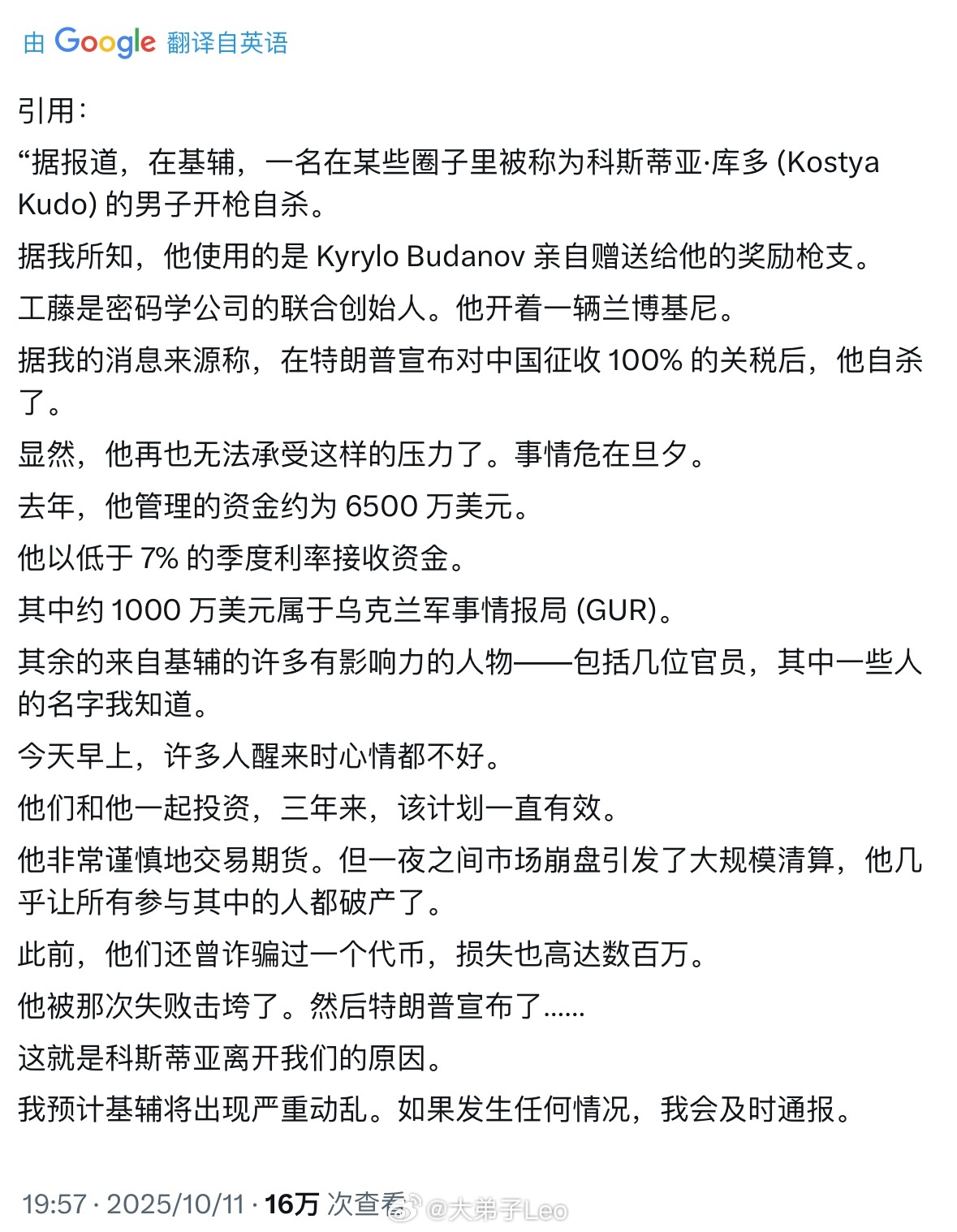 特朗普宣布征收100%关税后,加密货币市场遭遇历史性暴跌,一名乌克兰加密货币操作者在损失投资人3000万美元后在基辅选择自杀