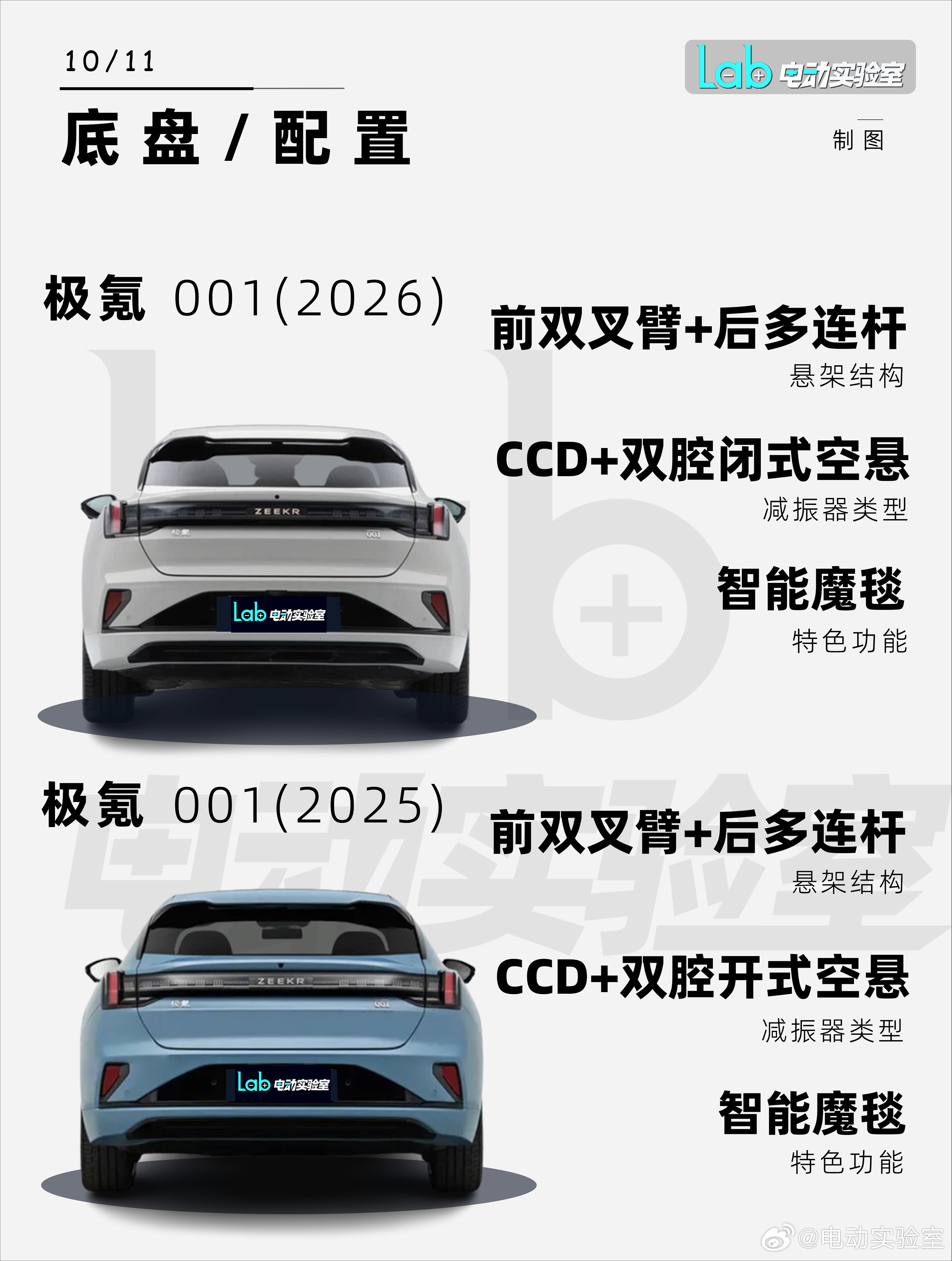 新老极氪001都采用前双叉臂+后多连杆悬架