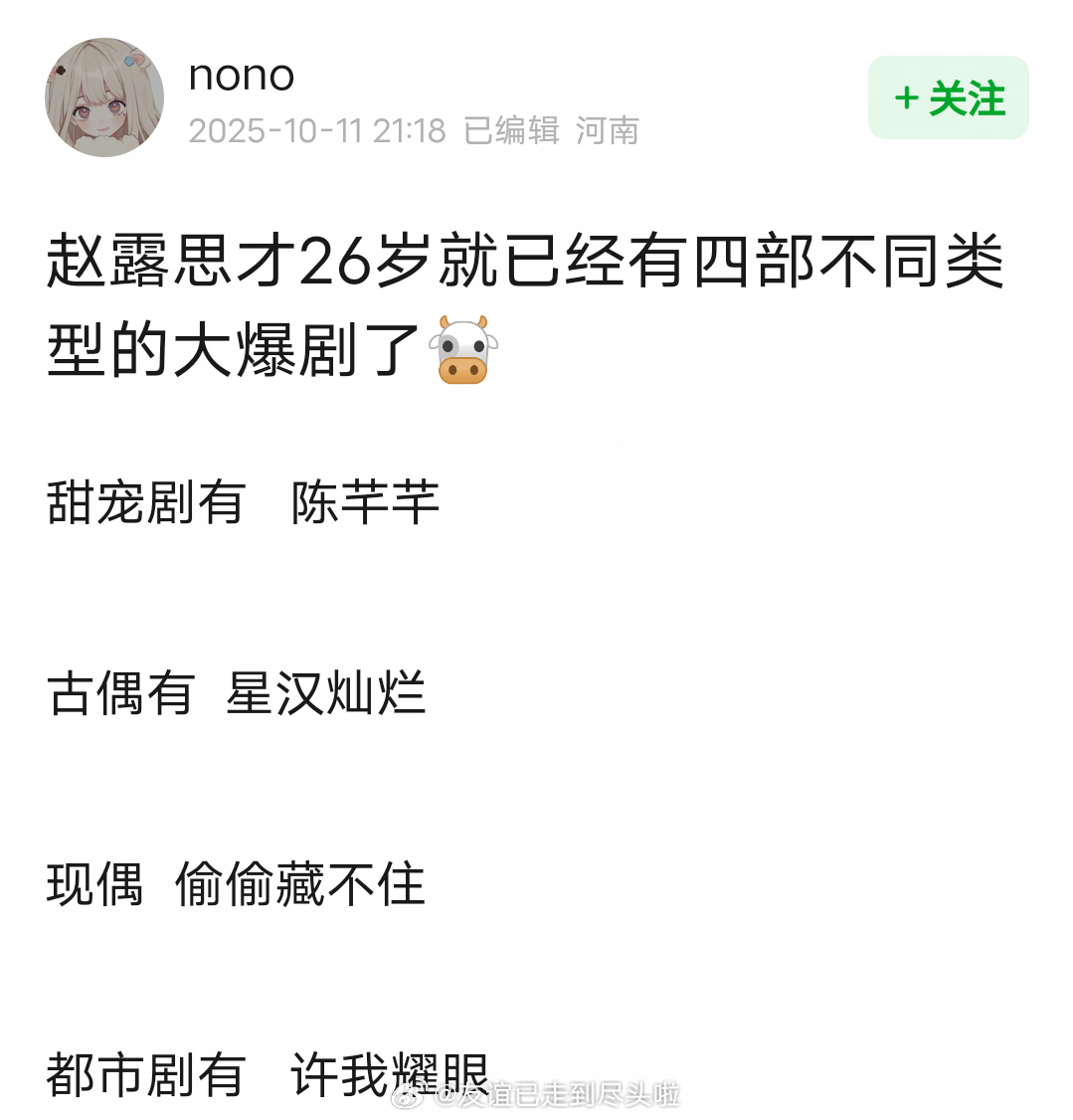 赵露思算不算顶级扛剧花?四大类型剧都有大爆剧