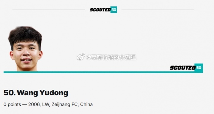 SCOUTED杂志年度全球50大新星,浙江队18岁小将王钰栋入围榜单,排名第50位。热点解读中超联赛国足世预赛