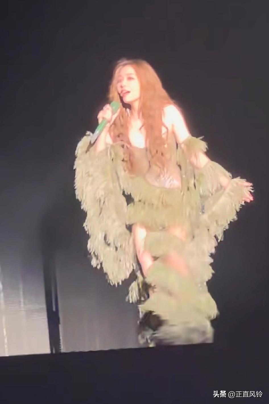 张靓颖演唱会突发意外,不小心从升降台掉下,舞台黑的,但是身上很亮,这种情况根本看