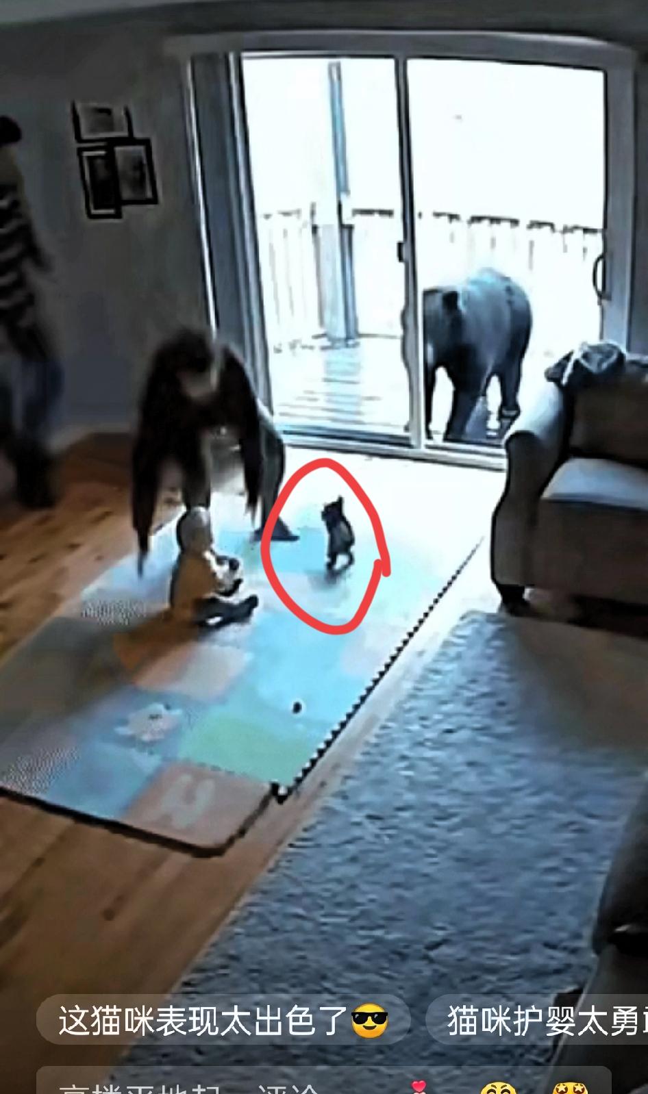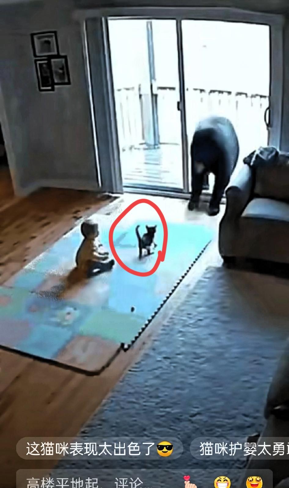 一只狗熊无意间从阳台闯进了屋子,见屋里只有一个婴儿,就想走过来 危险就在眼前,平时只会黏人要抱抱的小猫咪,居然瞬间炸毛冲上去,小小的身子硬生生挡在了中间! 狗熊当场就懵了,活这么大没见过这么小的“硬茬”——自己随便抬下爪子都能把它扒开,可猫咪梗着脖子哈气,眼神半点不怂。 它盯着猫咪看了半天,反倒越想越怵:这么点儿的都敢拦我,说不定屋里藏着更厉害的?越琢磨越没底,脚步慢慢往后退。 就在这时,婴儿爸妈赶回家,一进门看见这惊险场面,赶紧大声呵斥。狗熊像是抓住台阶,立马转身往阳台外退,没一会儿就钻进了树丛。后来夫妻俩翻监控,看着猫咪挡在前面的小身影,又惊又暖,眼泪都快出来了——平时连打雷都躲沙发底的小毛球,居然敢跟大狗熊叫板。 其实哪是猫咪不怕危险,是“护着家人”的念头,盖过了骨子里的恐惧。总有人说养宠物没用,可关键时刻,这些毛孩子拼尽全力护着你的样子,比啥都实在。它们不懂“危险”的定义,却把你当成了要守护的全部。 你家毛孩子有没有过让你破防的瞬间
