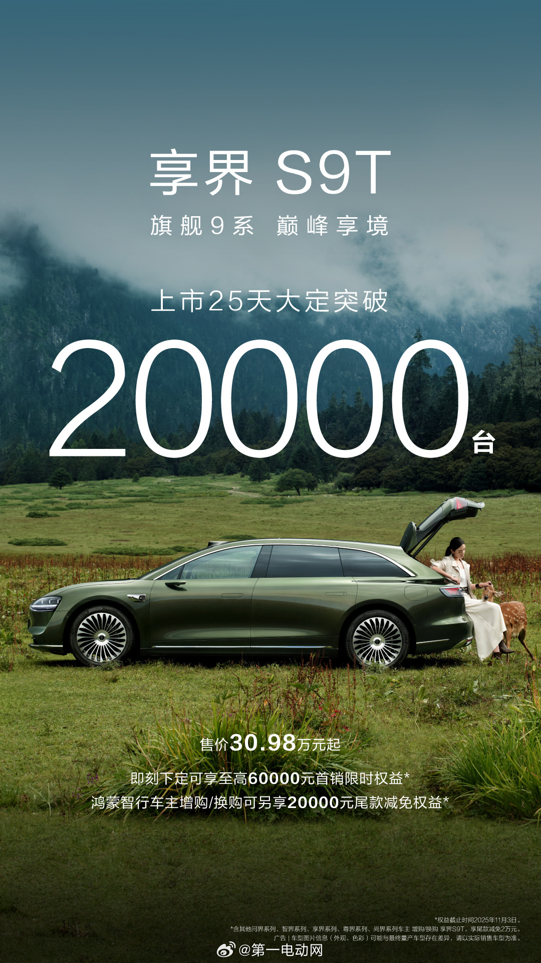 享界S9T自9月16日上市以来,25天内大定订单突破20000台