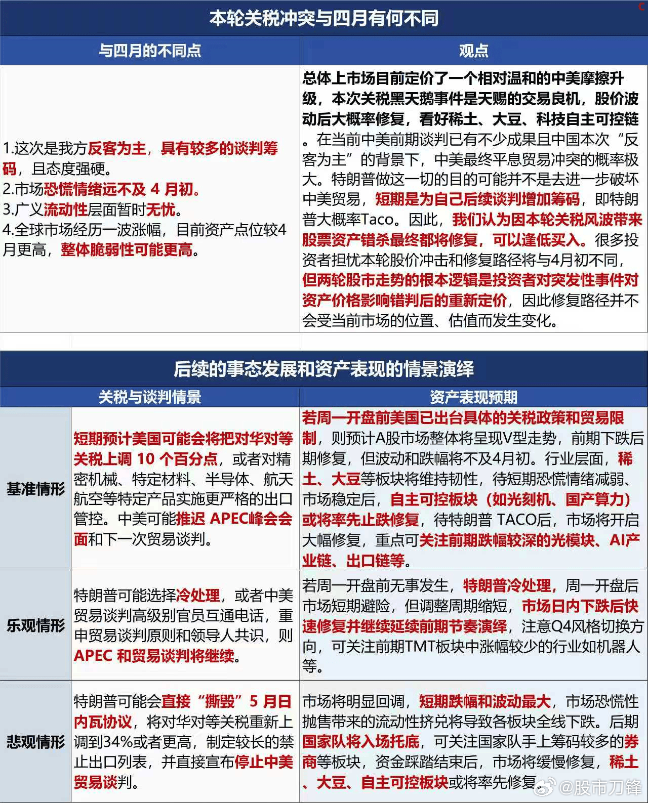 2、中美局势升级了 但没失控。中国对老美的稀土反制12月才生效,老美对中国的加征100%关税是11月生效。特朗普说会见没取消,这给双方留下了谈判空间。