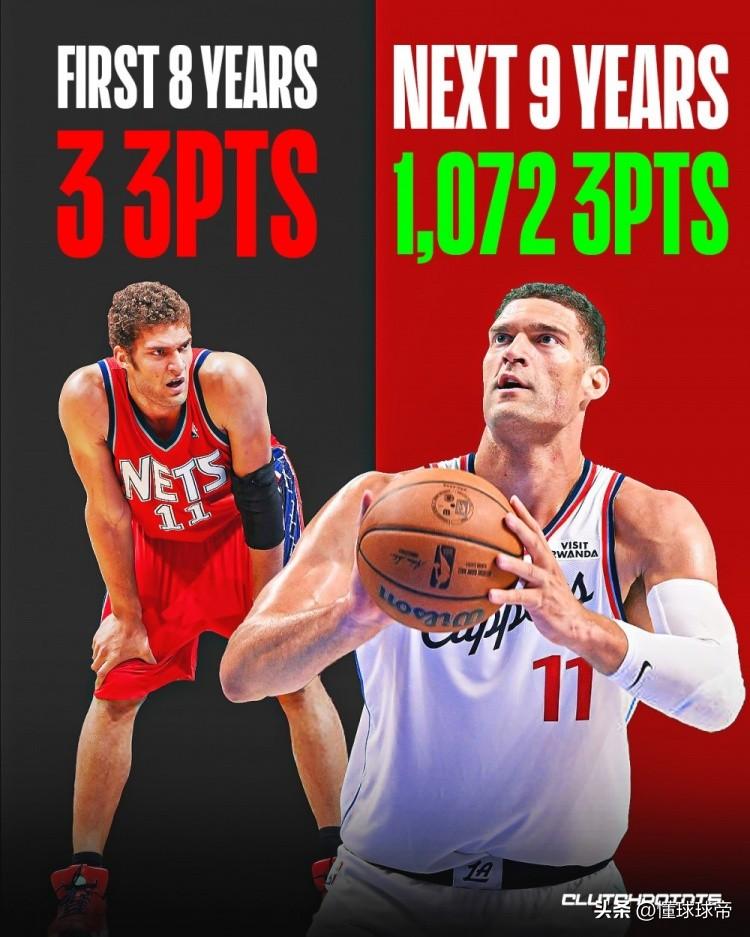 大洛佩兹前8个赛季仅投进3个三分,后8个赛季狂进1072个三分! 众所周知,在如今的NBA,不会投三分的中锋不是好中锋,大洛佩兹就是活生生的例子。在职业生涯前8个赛季,大洛佩兹还是一个传统的中锋,三分总共31投3中。 然而自从勇士开启小球时代后,大洛佩兹在16-17赛季开始苦练三分,到本赛季三分合计是3024投1072中。 这也是为什么传统中锋要么提前退役了,要么只能在一些球队打酱油了,而像约基奇,小萨博尼斯,申京等中锋都有一手三分,顺应如今的NBA。
