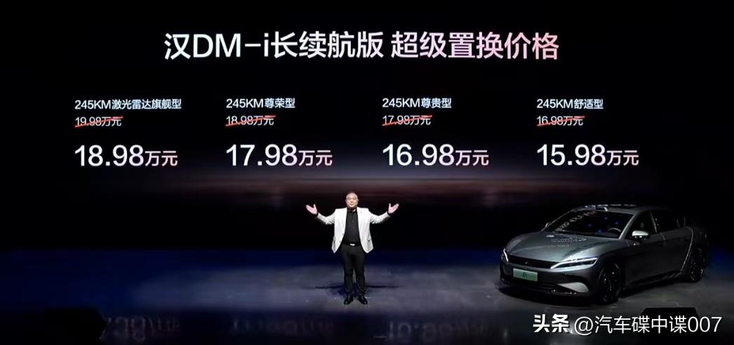 汉dmi长续航245km版本正式上市,起售价为16.98万,还能享受1万元的置换