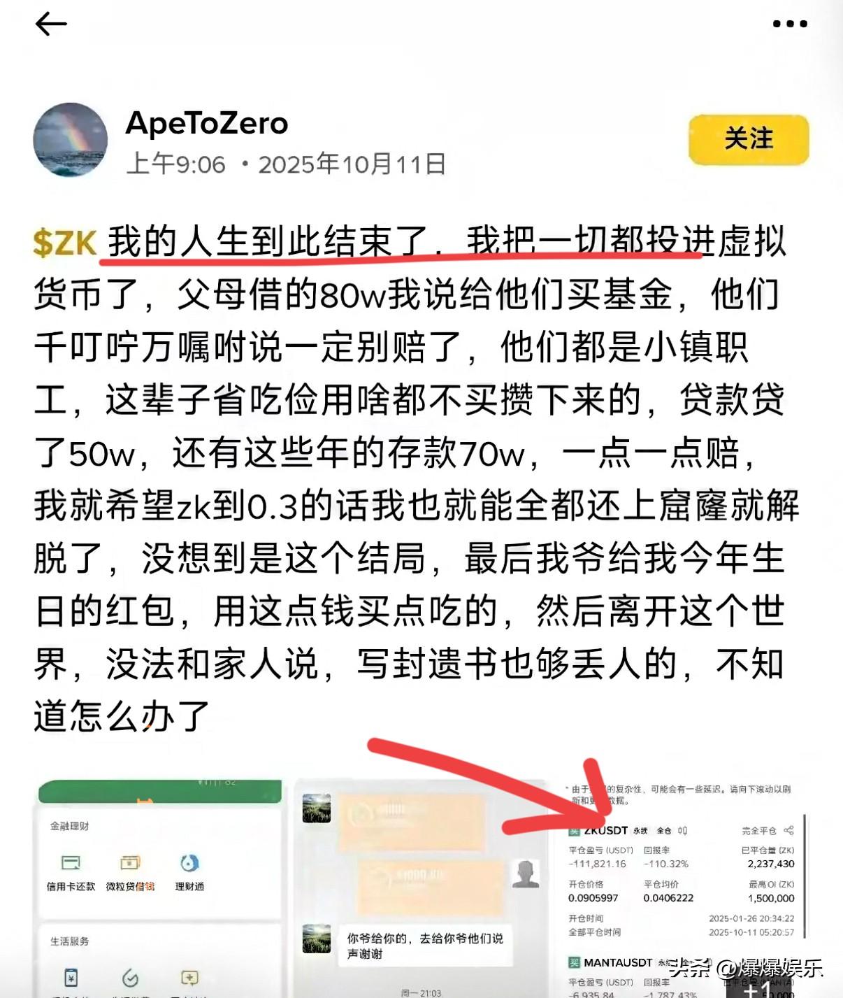 80万养老钱一夜归零,有个交易者,把父母省吃俭用一辈子攒的80万——本来要用来买基金的钱,全投进了虚拟货币。结果 赶上虚拟货币市场暴跌,好多人爆仓,这80万直接归零,连点水花都没剩。真的太糊涂了!那可是老人的养老钱啊,虚拟货币波动那么大,哪能这么赌? 说到底,高收益背后藏着高风险,别拿血汗钱去碰没谱的东西。大家觉得,这事儿最该警醒我们的是啥?