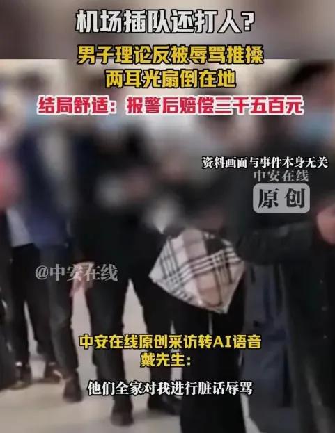 记住这丑恶的嘴脸吧 机场值机柜台前,女人的动作比骂声还快 2025年近期,某机场里,女人插队被工作人员拦。反手两耳光,把人打得坐倒在地。全家围上来,脏话像机关枪似的喷。被打者报警,女人一开始哭穷,说3500元赔偿拿不出来。民警提醒,不赔要拘留15天,她才慌了,赶紧同意,还逼着当事人删视频。可当事人转头就把视频恢复,发上了网 根据《治安管理处罚法》第四十三条,殴打他人要处5到10日拘留,200到500元罚款;情节重的,10到15日拘留,500到1000元罚款。这次的3500元赔偿,包括被打者的医药费、误工费还有精神抚慰金。机场插队不是小事——之前有个机场,两人插队吵架,值机队伍乱了40分钟,3个航班乘客差点误机 为什么当事人要恢复视频? ①气不过对方“变脸”——刚卖惨同意赔偿,转头就逼删视频,态度太嚣张; ②想让恶行“见光”——耍横后的卖惨更恶心,不能让这种人逍遥; ③不想让别人受害——删了视频,这家人下次可能还敢插队打人 这种“先耍横再卖惨”的套路,抓住了普通人“息事宁人”的心理。可当事人偏不按常理出牌,恢复视频曝光,就是要让丑恶摊在阳光下。网络传播快,全国网友都能看见这家人的嘴脸,比拘留更难受——脸丢到全国了,以后出门都得躲着人 有网友留言“没见过钱吗?差这3500啊?坚决不合解,坚决让这种货色进去反省几天!”这话戳中了很多人——卖惨不能抵消打人的错,该受的惩罚就得受 我觉得当事人做得对。插队打人还全家助阵,就该让他们尝尝“出名”的滋味。“家”不是恶行的保护伞,该是教人行善的地方 你支持当事人恢复视频的做法吗?