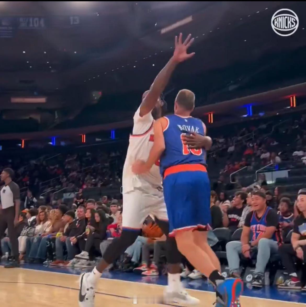 尼克斯名宿JR和诺瓦克在球场重聚,身体有些发福,但状态依然有;
