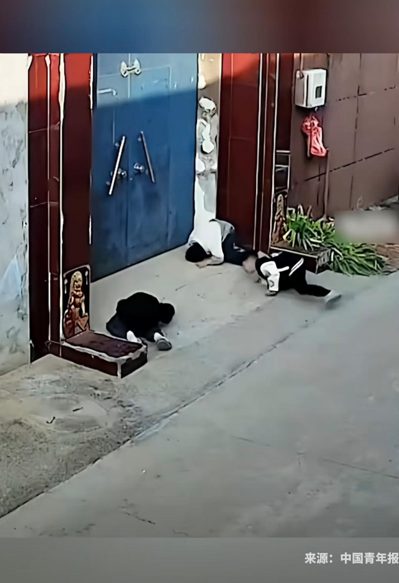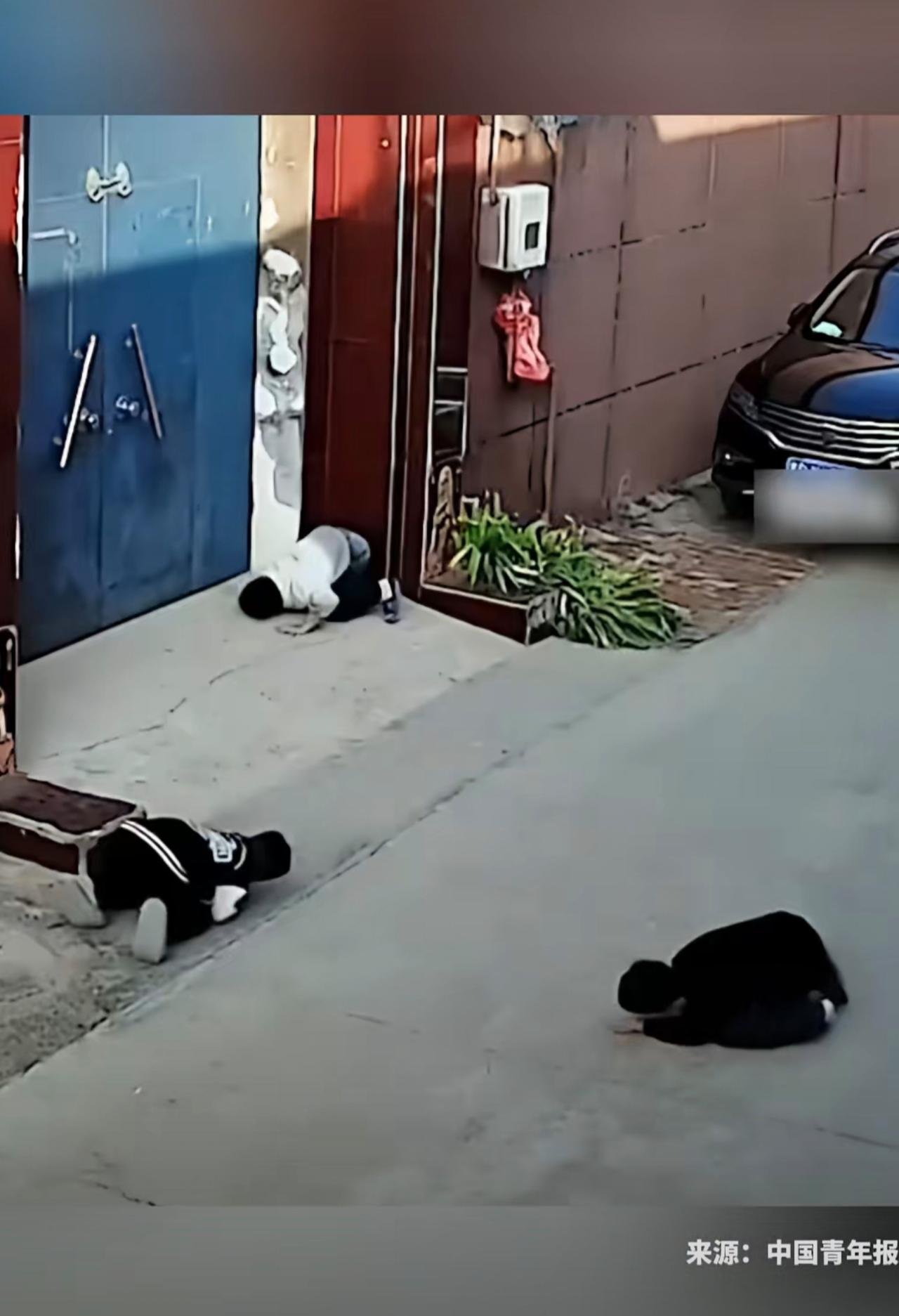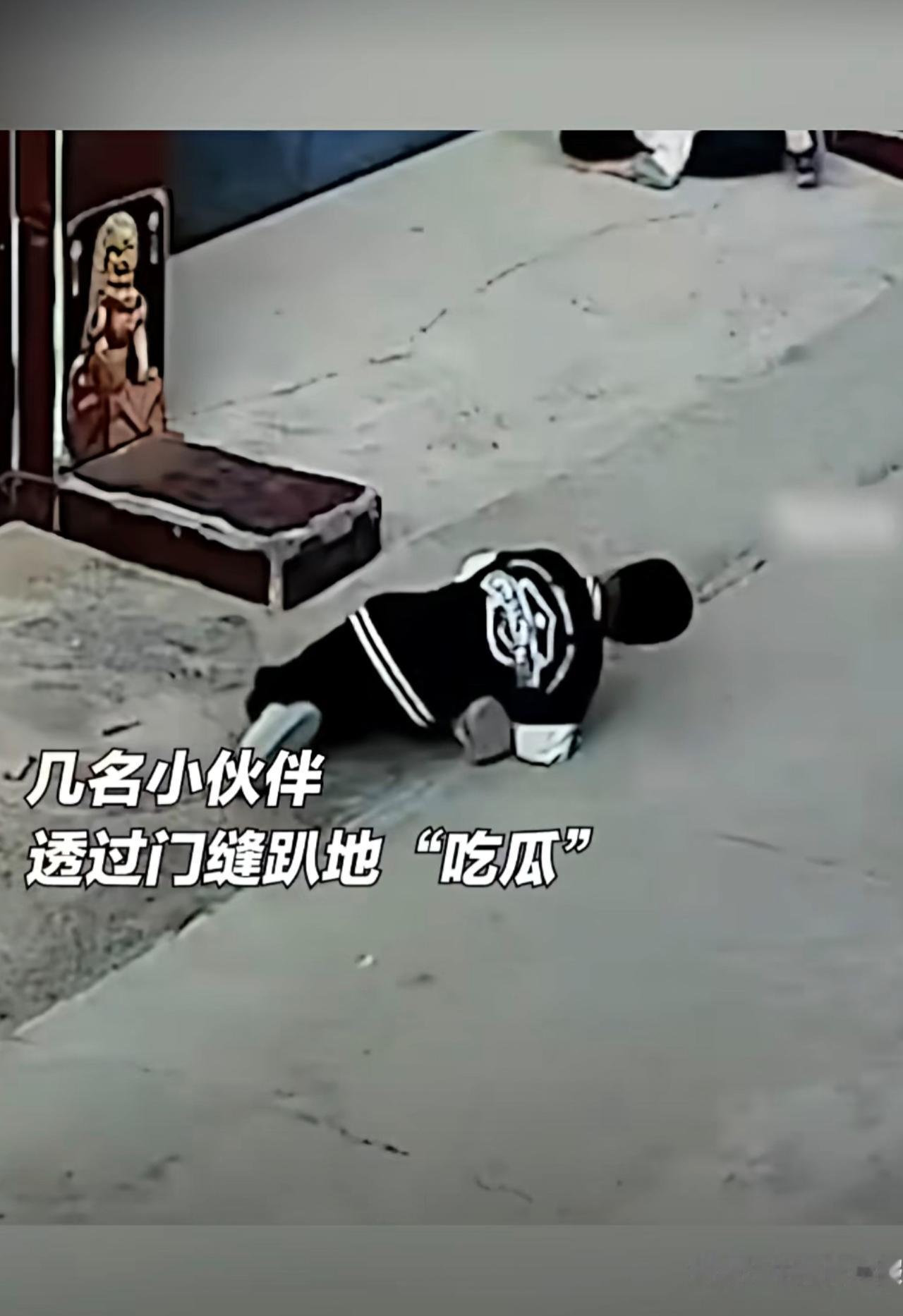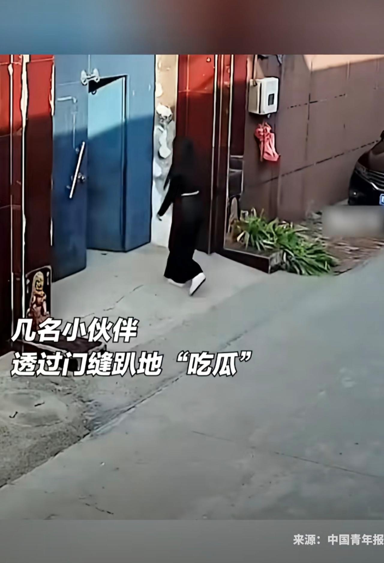 6岁女孩因调皮被妈妈教育,几名小伙伴透过门缝趴地“吃瓜”。