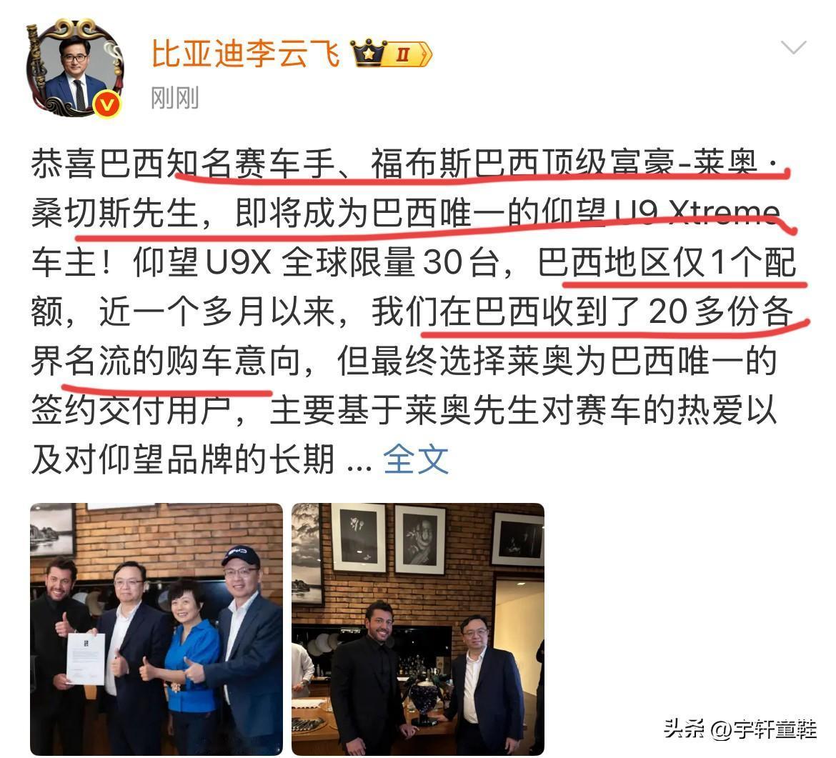 仰望U9X全球第一位车主亮相! 来自李云飞消息,巴西知名赛车手、顶级富豪-莱奥.