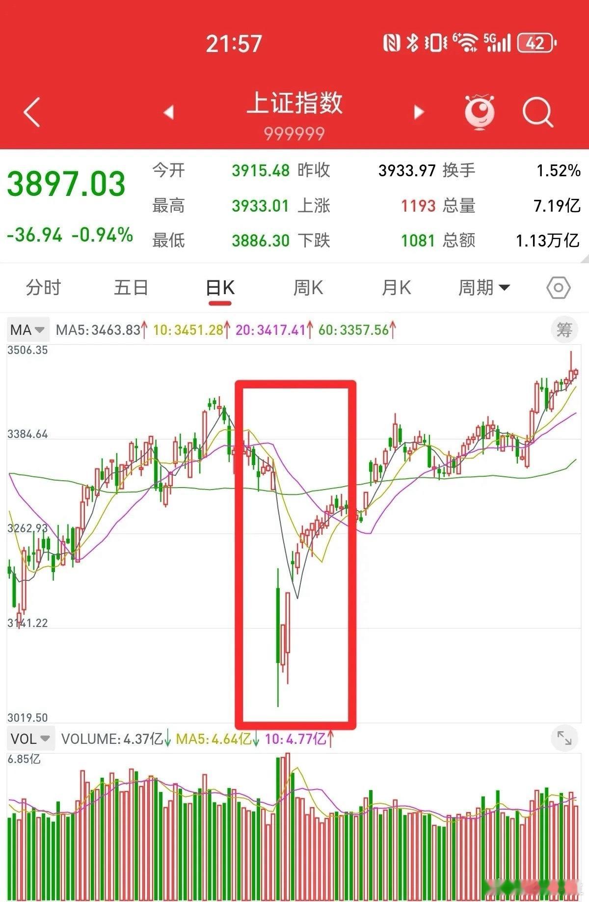 第二种,上证指数大幅低开5%,触及六十日均线,之后缓慢攀升。周五上证指数收盘3897点,处于近十年的历史高位。大幅下跌的压力,明显高于四月初所在的3358点。