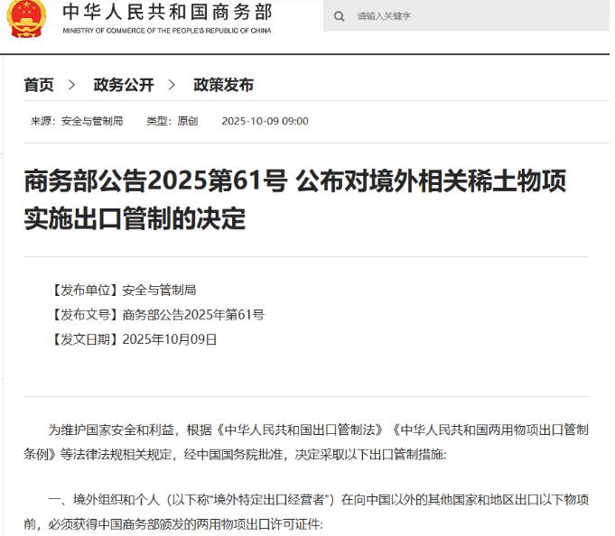 【一天不到,中国抡出6板重斧,川普越是急着讲道理,越是我们说明做对了】 要说这事儿的由头,还得看美国前段时间的操作,一边借着关税休战期跟咱们谈条件,一边背地里小动作不断,9月份刚在台海和黄岩岛挑完事,10月8号众议院又鼓噪着要加强半导体领域的对华制裁,扩大实体清单范围,摆明了是觉得极限施压那套还能管用。 结果没等他们把新制裁落地,10月9号这天,中国商务部直接甩出六份公告,从稀土矿石到加工技术,从生产设备到原辅料,甚至连境外用中国技术生产的产品都给管了起来,这哪是普通的政策调整啊,简直是把稀土产业链从头到脚给管死了,一套组合拳下来,外媒都直呼是“史无前例的反制”。 这六板斧可不是虚晃一枪,每一下都砍在美国的软肋上。以前咱们管制稀土,顶多是卡矿石出口,这次直接把网撒得又大又密。你以为把矿石运到越南加工成磁体,再卖到美国就能绕过去? 门儿都没有,新规里明明白白写着,只要含0.1%以上中国重稀土成分,不管在哪组装的,都得申请中国许可,这招直接堵死了那些“阳澄湖洗澡蟹”式的猫腻。 更狠的是技术管制,连设计图纸、工艺参数都算在内,等于直接掐断了美国想自己搞稀土加工的路子——毕竟全球90%的分离加工技术都攥在咱们手里,没有中国的技术支持,就算美国本土挖得出稀土,也只能当一堆废石头。 最要命的是,这招精准瞄准了美国最拿得出手的半导体和人工智能产业。懂行的都知道,高性能芯片、AI服务器离不了稀土磁体,而中国控制着全球93%的磁体制造产能,美国F-35战斗机里的稀土永磁体九成以上都来自中国产业链,雷神公司早预警过,要是缺了这东西,爱国者导弹的生产线都得停摆。 新规里特意强调,军事用途的出口原则上不予许可,14纳米以下芯片、AI研发这些敏感领域要逐案审批,等于直接攥住了美国科技和军工的命门。美国创新基金会的前AI政策顾问看得明白,直说这要是严格执行,美国经济都可能陷入衰退,还有智库大佬更直接,称之为“经济核战争”。 这边咱们的措施一公布,白宫那边立马就乱了套。特朗普在内阁会议上被记者追问时,那股子往日说一不二的嚣张劲儿突然就没了,支支吾吾地说自己“刚得知消息”,话没说完就把问题甩给了财长贝森特和商务部长卢特尼克,跟一个月前频频放话要加征港口费的强硬态度比起来,简直判若两人。 要知道这可是“懂王”啊,以前就算理亏也得硬撑着放狠话,现在居然学会了“讲道理”甩锅,这反应明摆着是被打懵了,疼得攥不住拳头了。 更有意思的是美国内部的连锁反应,新规出台当天,国内稀土板块股价噌噌往上涨,美国那边却是一片哀嚎。福特汽车早就因为稀土短缺关过部分车间,现在更是慌了神;大众的电动车交付计划直接推迟,车企高管急着往华盛顿跑,求政府赶紧想办法。 最闹心的还得是美国豆农,他们已经连续好几个月没接到中国订单了,这可是1999年以来头一遭,特朗普急着在社媒上画饼,说要拿关税收入补贴他们,结果根本没人买账——大家都清楚,比起那点不确定的补贴,稳定的中国市场才是饭碗。 美国不是没想过反击,一会儿放话说要加征关税,一会儿又喊着要加快本土稀土产能建设,还拉着越南、印尼想搞替代供应链。可这些招儿根本不管用,稀土加工不是挖煤那么简单,美国本土的精炼厂刚起步,没个三五年根本形成不了产能; 越南、印尼倒是有矿石,可没有中国的设备和技术,根本炼不出合格的磁体。咱们这六板斧早算到了这一步,连境外生产线的设备供应都管了起来,你想绕开中国建产业链?先看看手里的“铲子”是不是中国造的再说。 其实这事儿的道理特简单,跟美国打交道,从来不是比谁嗓门大,而是看谁手里有硬牌。以前美国总觉得能靠技术封锁、关税施压拿捏咱们,可这次稀土管制一出手,他们就露了怯——原来他们的高科技产业、先进武器,压根儿离不了中国的供应链。 美国战略与国际研究中心的专家说得实在,中国这哪儿是反击啊,分明是在谈判桌上有条不紊地布新棋,每一步都踩在节奏上。 从2018年贸易战打到现在,咱们早就摸透了美国的套路,你打你的关税牌,我打我的资源牌,你越是急着施压,我越是稳扎稳打。这次的六板重斧就是明证,不是咱们想挑事,而是别人都打到家门口了,总得亮出家伙事儿。特朗普现在愿意“讲道理”了,不是因为他突然懂礼貌了,而是因为他终于发现,极限施压那套在中国面前不好使了。 说到底,国际博弈从来都是实力说话,手里有稀土这张王牌,有全产业链的控制权,咱们就有底气跟美国耗下去。他想打多久,咱们就陪多久,直到把那些不合理的管制、不公平的关税都谈回来。 特朗普越是急着让手下收拾烂摊子,越能说明咱们这步棋走对了——毕竟疼了才会讲道理,这道理在哪都通用。