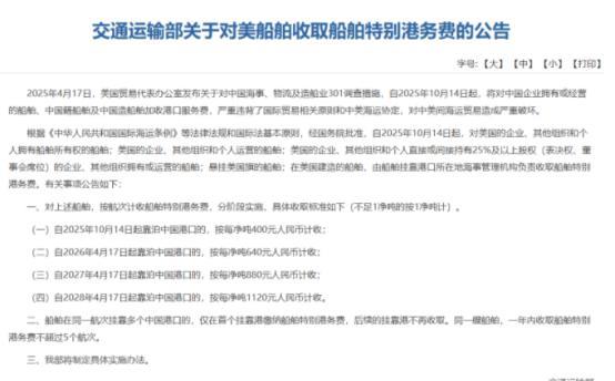 中方明码标价,4天后,美国船只就得乖乖交钱 中国交通运输部刚刚宣布,对美国船舶收取船舶特别港务费用,以反制特朗普政府一系列针对中国的错误举措。 此举也对应上了中美如今“对等”的态势——美国退一步,中国退一步;美国进一步,中国也进一步。 美国这边肯定清楚,中国港口对他们的船舶有多重要。这些年美国不少农产品、工业产品要靠中国市场消化,而这些货物大多得通过船舶运到中国港口。要是不交这笔特别港务费,美国的船要么就得绕路去找其他港口,可周边能替代中国港口效率和规模的没几个;要么就只能停在外面等,可时间一长,货物滞留的成本、船舶闲置的损失,最后还得算到美国企业自己头上。 之前美国总觉得能靠各种限制拿捏中国,可他们忘了中国早就不是以前的样子了。现在中国的港口体系越来越完善,不管是吞吐量还是运营效率,在全球都是顶尖水平。美国的船舶要是想放弃中国港口,损失的可不是一点半点。就拿美国的大豆、玉米来说,之前因为关税问题已经丢了不少中国市场,现在要是再因为船舶费用的问题卡住运输,那些等着出货的美国农民、贸易商恐怕得更着急。 而且中国这次的反制,不光是针对特朗普政府的不当举措,更是在维护自己的合法权益。国际交往讲究的是平等互利,美国既然破坏了这种平衡,中国就有权利采取相应措施来恢复平衡。这笔特别港务费不是狮子大开口,收费标准是根据中国港口的运营成本、服务水平,结合国际通行惯例定出来的,每一分钱都有章可循。 美国船运公司心里肯定在算账,不交钱的代价太大,交钱虽然会增加成本,但至少能保证货物正常进出中国港口,能保住中国这个大市场。这么一对比,4天后乖乖交钱几乎是唯一的选择。毕竟做生意的都懂,跟钱过不去的事儿没人愿意干,尤其是在现在全球经济都不算景气的时候,丢了中国市场,想再找这么大的需求端可不容易。 还有一点很关键,中国这次的举措也是在给其他国家传递信号:中国不会主动惹事,但也绝不怕事。谁要是想对着中国来硬的,就得做好承担后果的准备。之前美国在贸易、科技等领域对中国搞限制,中国都一一做出了回应,而且每次回应都精准对应美国的动作,既不越界,也不示弱。 现在距离收费开始就剩4天了,美国相关部门要是还想抱着侥幸心理,觉得中国会“心软”,那可就打错算盘了。中国既然已经把规矩定下来,就不会轻易改变。美国的船舶公司要是不想陷入被动,最好的办法就是赶紧按照中国的要求,准备好这笔特别港务费,别等到最后耽误了运输,赔了夫人又折兵。 说到底,中国这次收取船舶特别港务费,不是为了跟美国对着干,而是为了维护公平公正的国际贸易秩序。美国要是真的想解决问题,不是想着怎么抗议、怎么施压,而是应该先反思自己之前的错误举措,主动回到平等对话的轨道上来。可就目前来看,美国要是不转变态度,4天后也只能看着自家的船舶乖乖交钱,毕竟在实实在在的利益面前,任何强硬的表态都不管用。