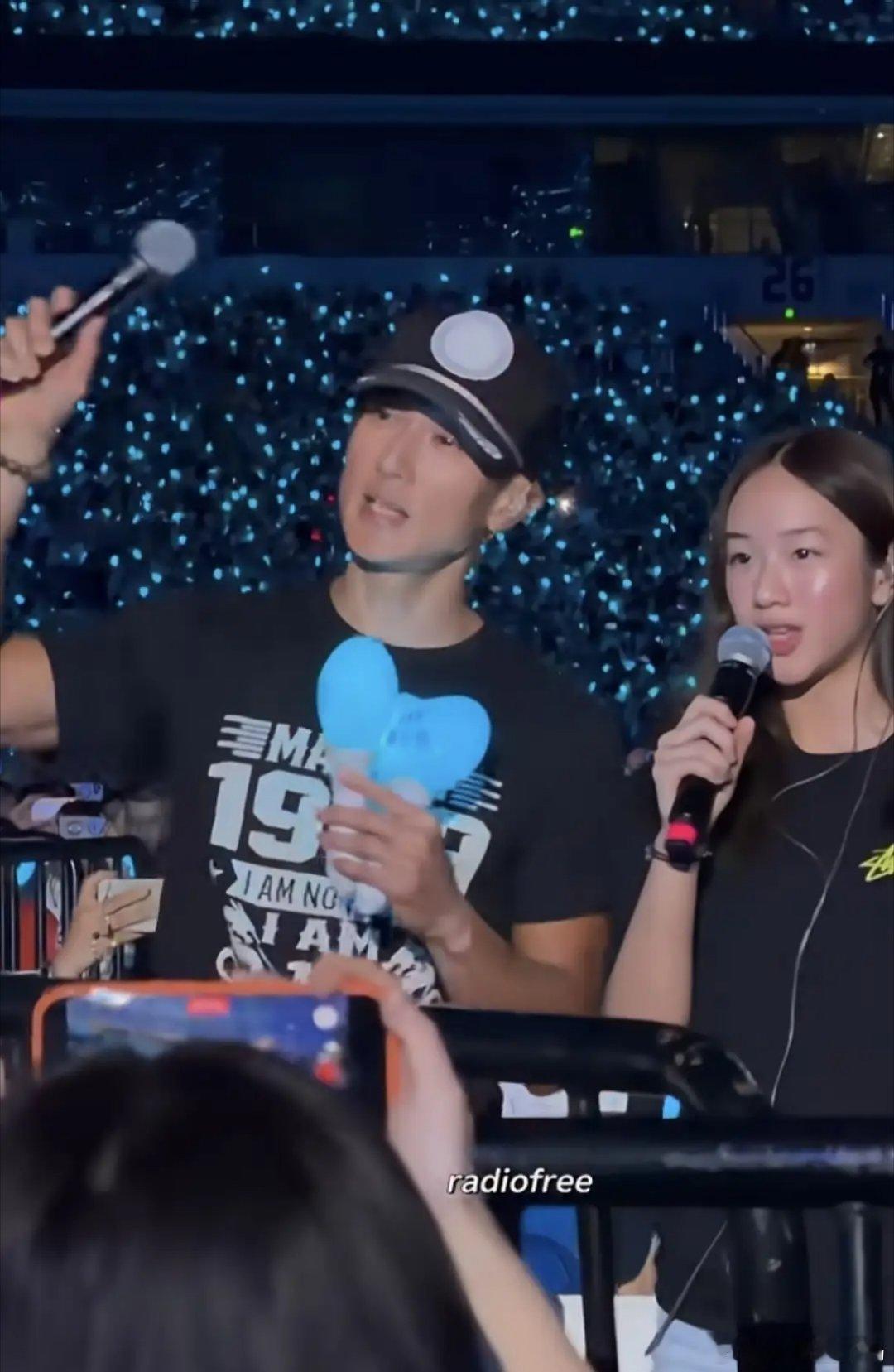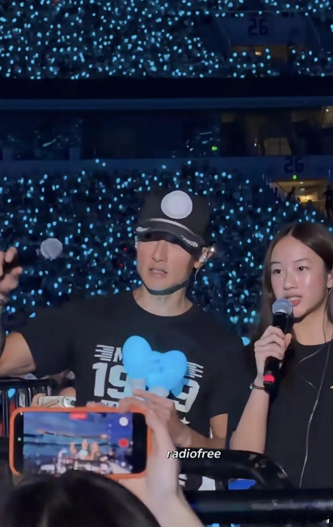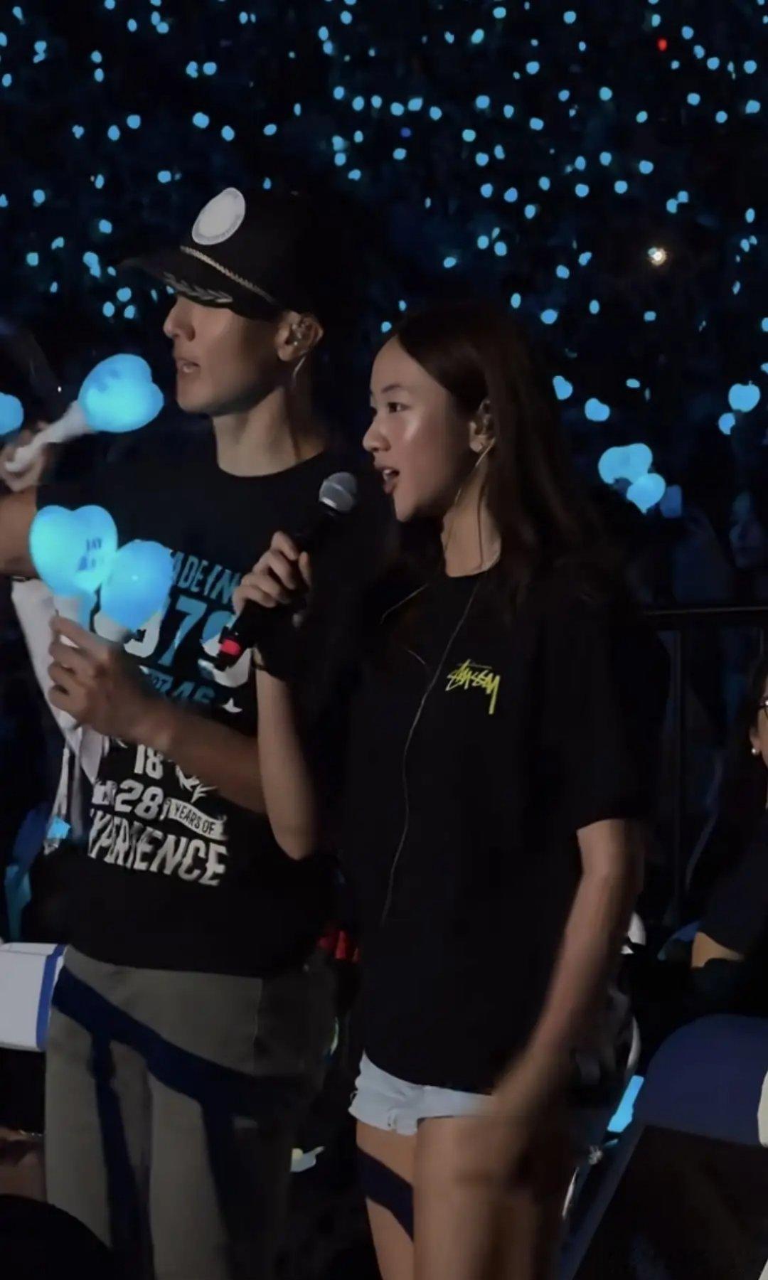 吴尊携女儿亮相周杰伦上海演唱会,15岁neinei侧颜鼻子好优越,下颌线明显,长得好漂亮,侧颜超像爸爸吴尊,现场拿麦跟唱超嗨