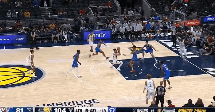 又行了?今天怀斯曼百发百中独得8分! 在今天NBA季前赛步行者对阵雷霆的第四节比