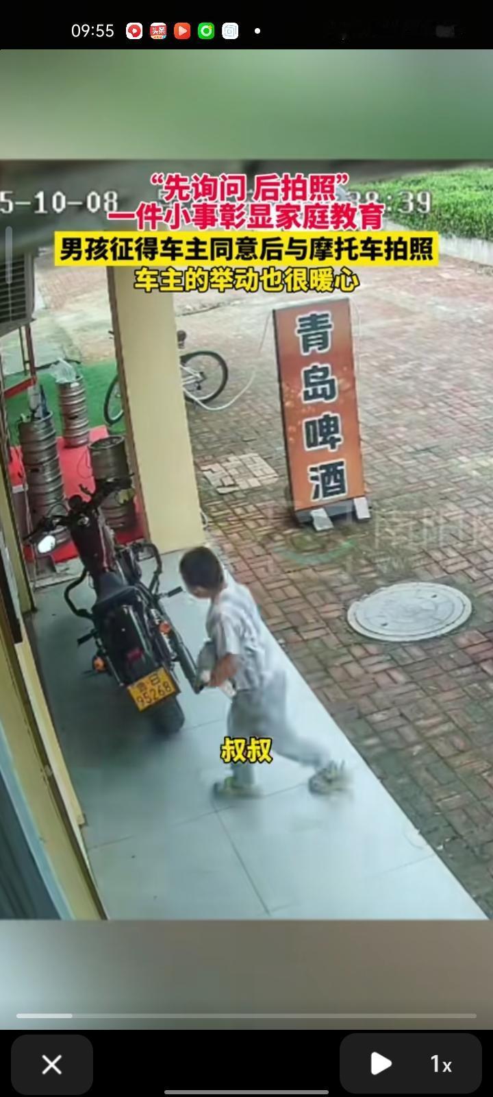 10月8日,青岛莱西市。监控画面显示,小男孩在店门口看见摩托车,便跟店主说“摩托车是你的吗?我可以跟它拍个照吗?”,店主觉得小男孩可能喜欢摩托车,就同意了。 接下来的举动让人暖心,因为小男孩比较害羞,店主主动让小男孩坐在摩托车上,孩子妈妈特别有礼貌,会教育孩子,征得店主同意后就开始和摩托车拍照了