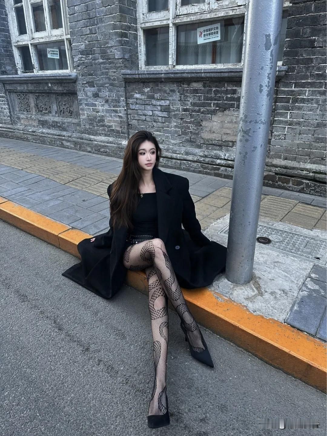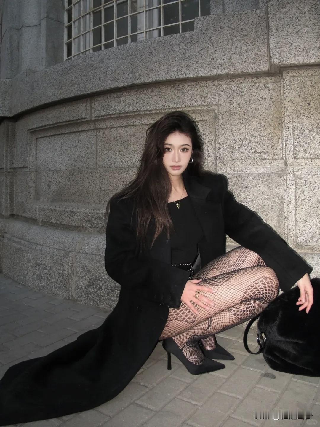 黑色风衣搭配这样的丝袜,陪你吃顿饭你愿意吗?