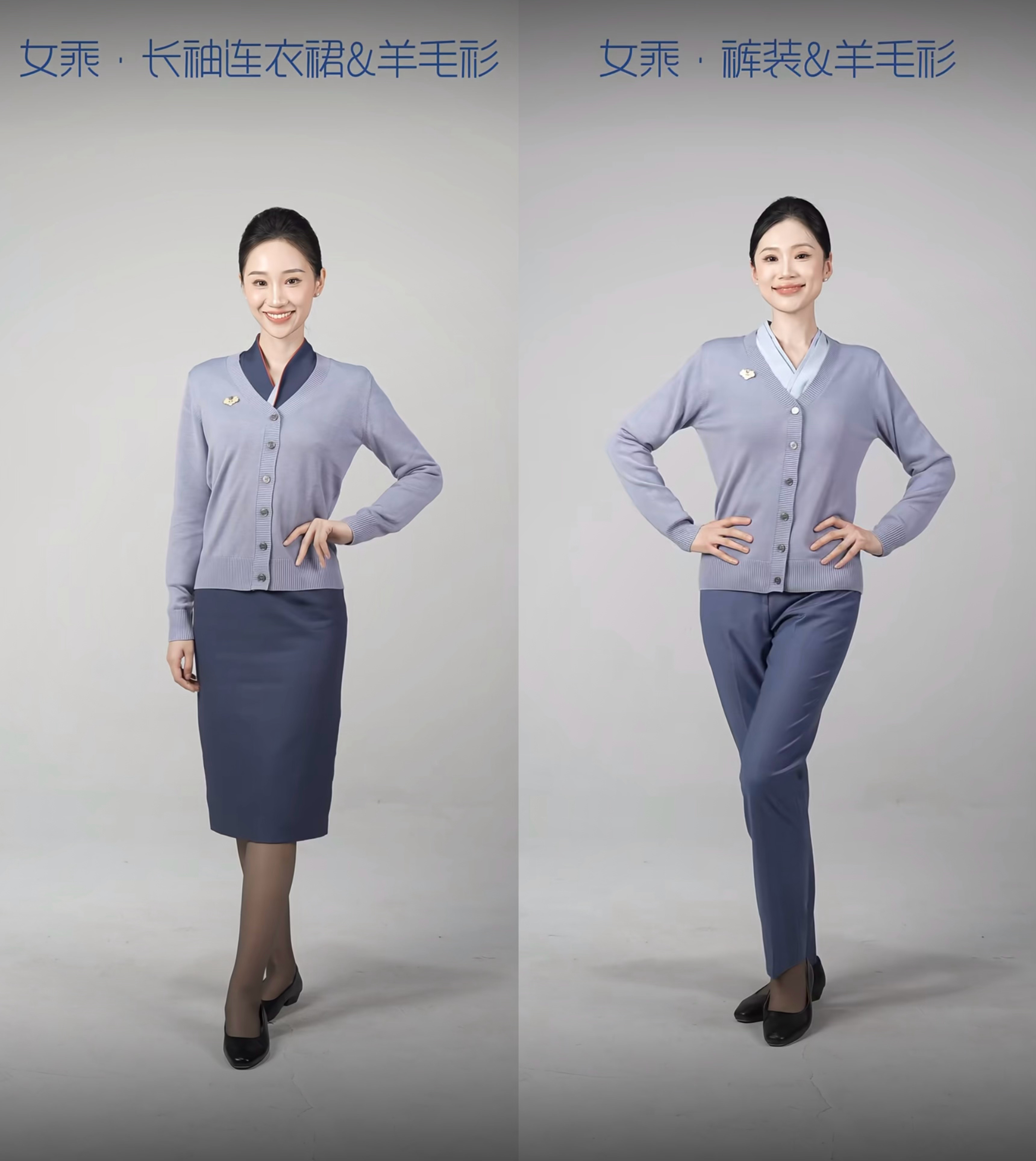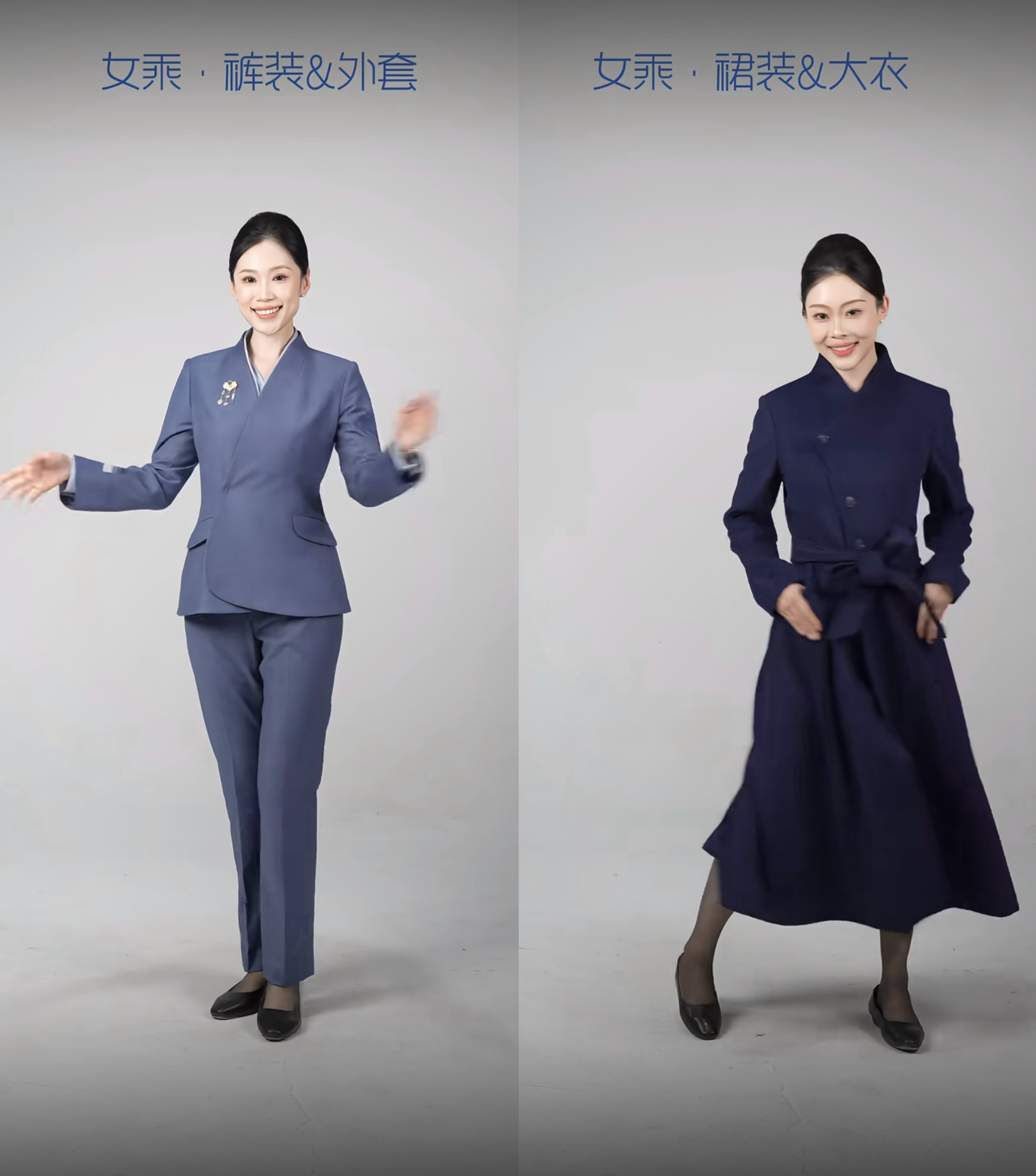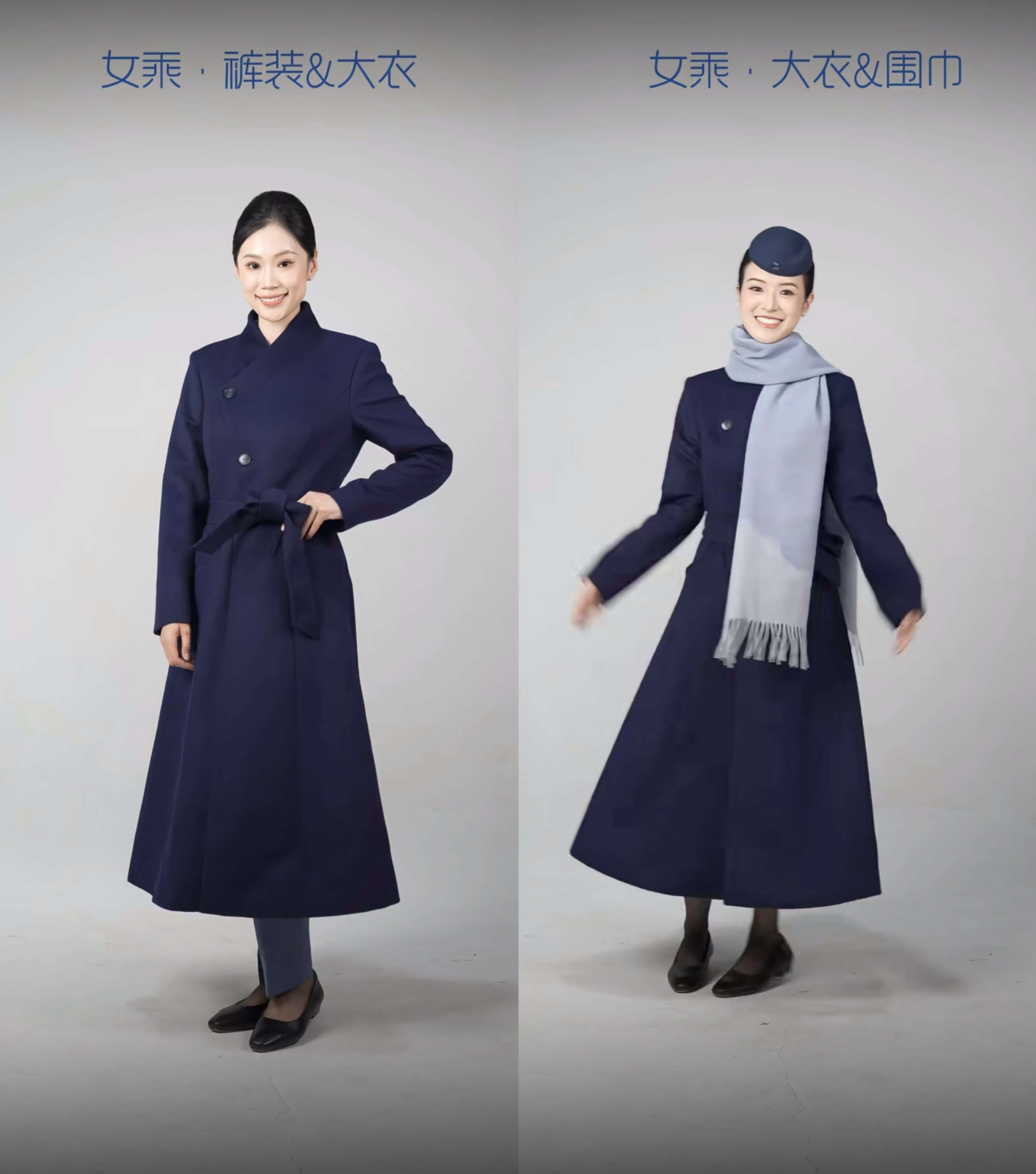 女乘务员可自由选择裙装或裤装、全面换穿平底鞋、裙装加长至过膝盖、大衣均配羽绒内胆