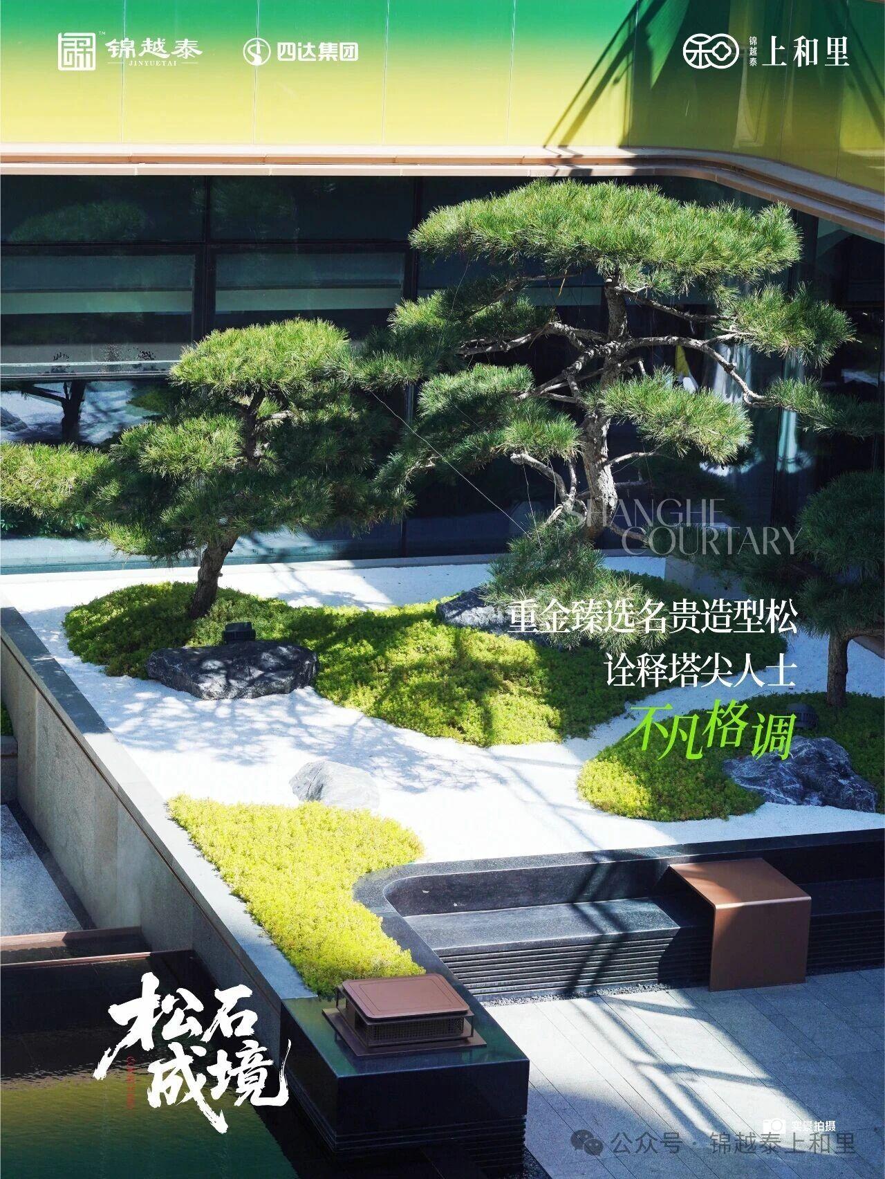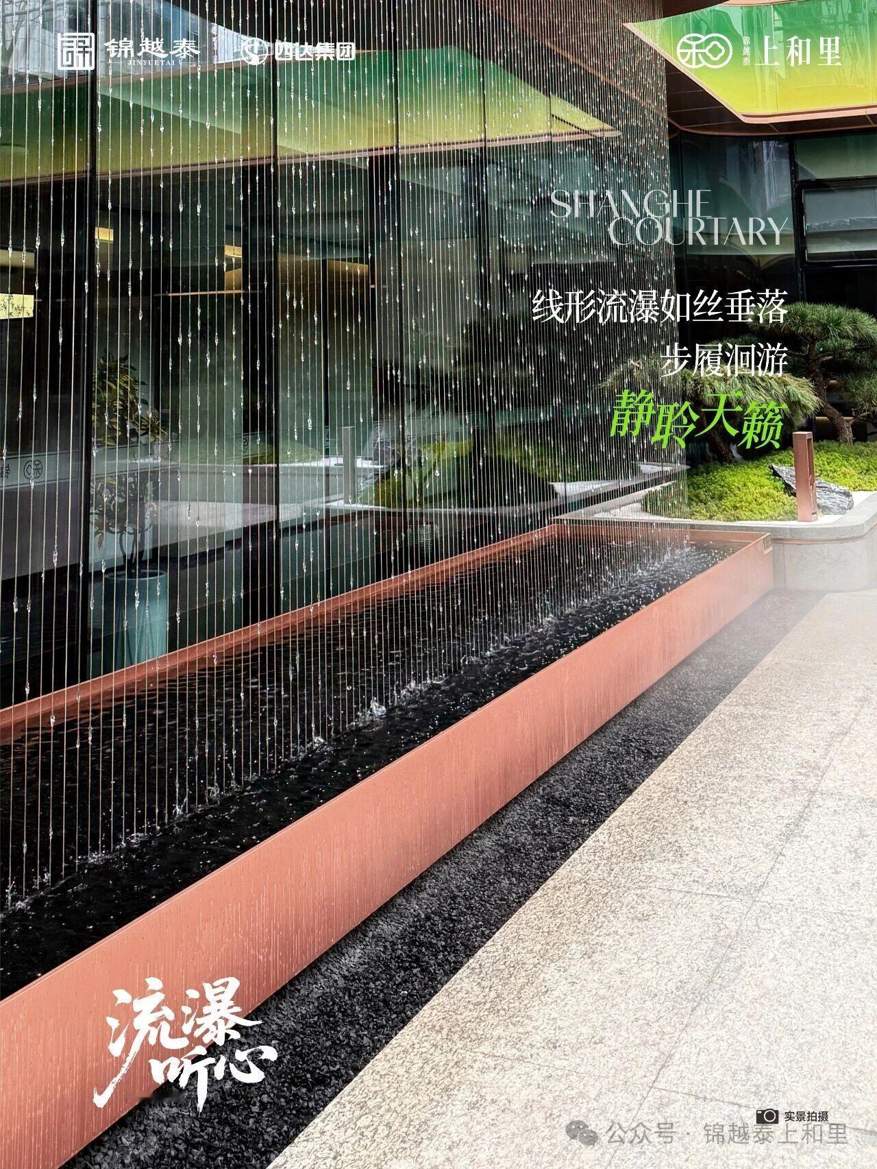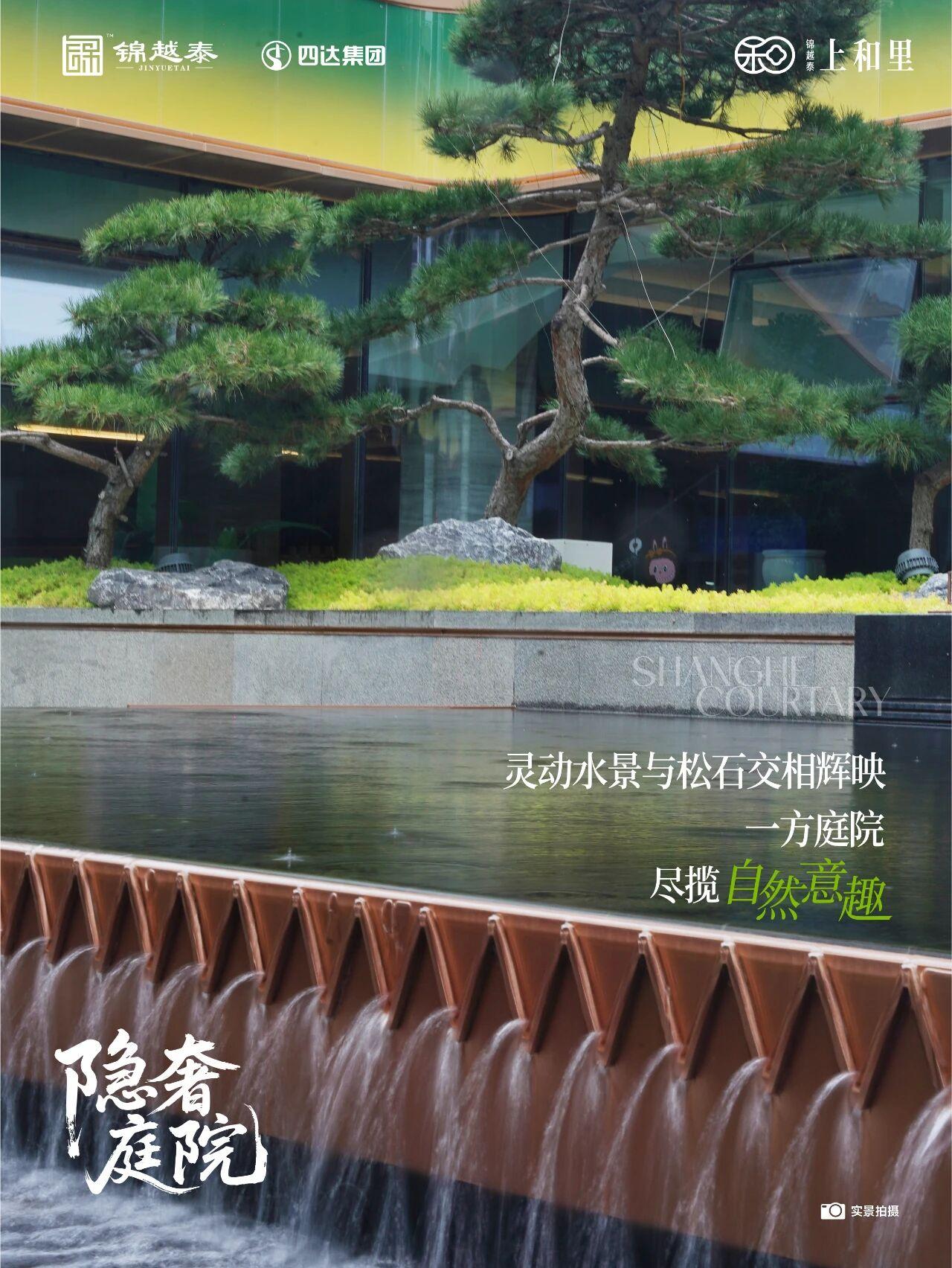 锦越泰上和里|下沉式庭院,私享归心隐逸之境 下沉式庭院 —— 以流瀑对景迎宾 苍松翠柏立骨,灵动水景映庭 打造一方融合自然与诗意的隐逸天地 名贵松景|精选造型松,枝干遒劲如天然雕塑,彰显不凡格调 灵动水韵|潺潺水声贯穿庭院,赋予庭院自然的生命力与宁静治愈 中轴流瀑|对称水幕如丝垂落,光影间诠释东方园林的秩序之美 上和里下沉式庭院 承载自然气息与生活诗意 让每一刻都成为心灵的栖息地