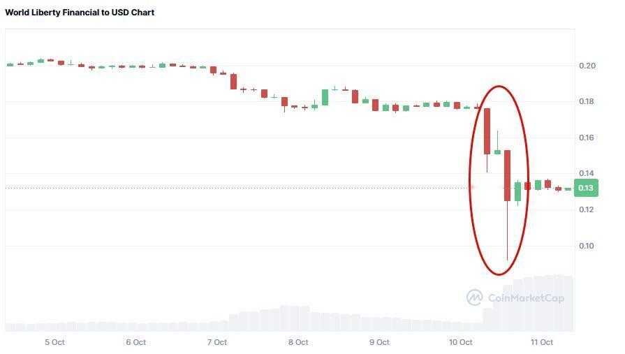 特朗普家族的加密平台 World Liberty Financial 的原生代币 WLFI 在总统对中国发贴后立即暴跌近50%,略低于每枚代币 0.10 美元,此后部分回升至 0.13 美元。