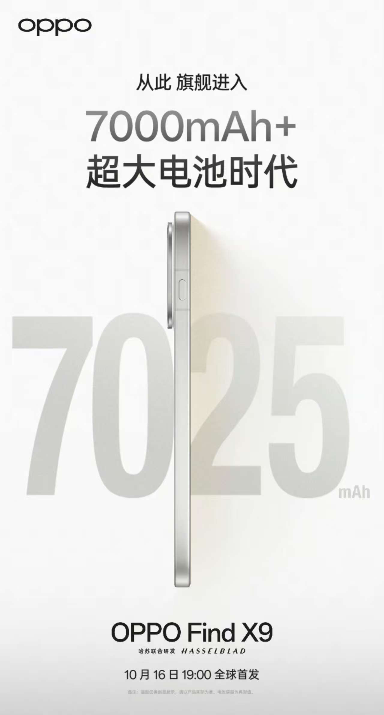 今年的旗舰手机,电池都在7000+mAh了。OPPOFindX9标准版采用7