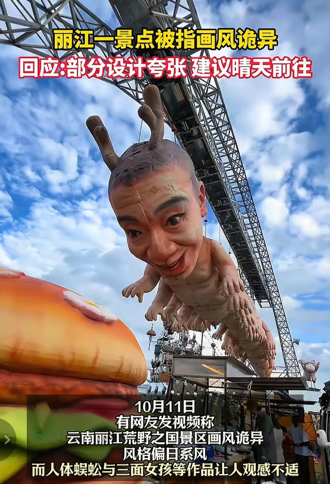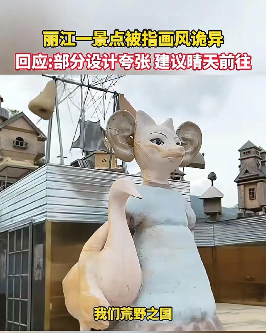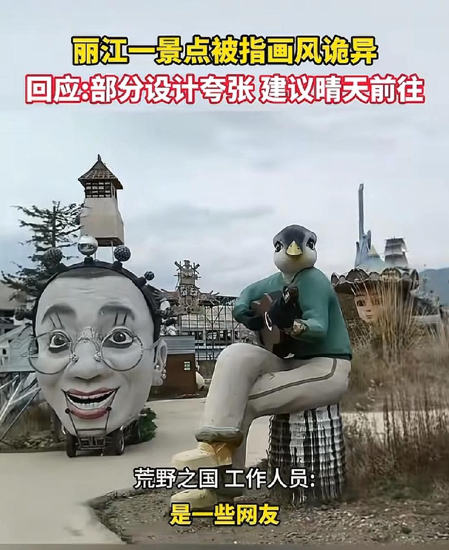 丽江这个“荒野之国”可真行,主打一个颠覆想象。 本来以为是温馨童话镇,结果一进去差点以为误入了惊悚片片场。 什么“人体蜈蚣”、“三面女孩”,造型一个比一个硬核。 工作人员还解释说这是用废铁表达柔软内心。 我寻思着这内心是不是有点太“刚”了? 光线不好的时候看,简直是视觉冲击拉满。 建议景区别叫“荒野之国”了,改叫“需要勇气才能欣赏的艺术之国”吧。 毕竟不是谁都能get到这种用诡异造型传递的"艺术感"。 丽江 旅游