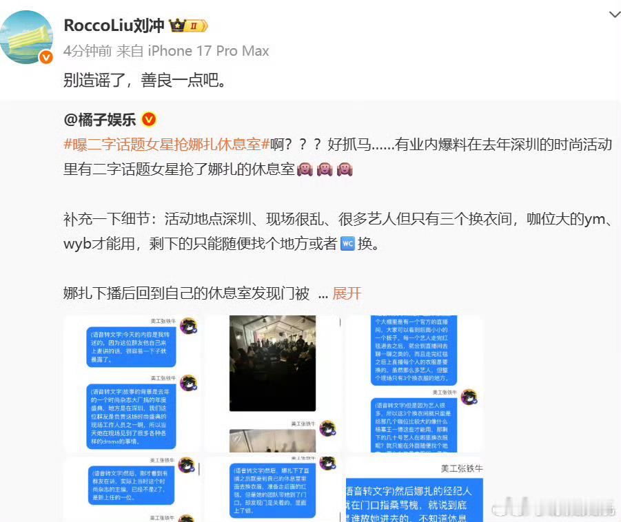 这事儿把娜扎经纪人和活动主办方主编刘冲吓得马上出来澄清了[思考]