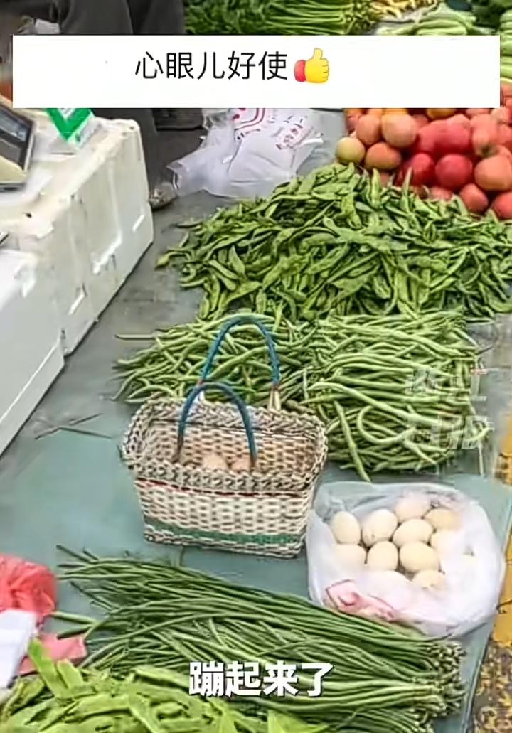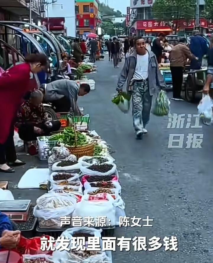 陈女士去菜市场买菜,路过一个地摊看到一位大婶满头白发缩坐在路边,于是心想去超市买