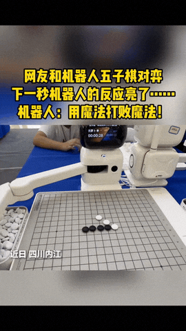 上人民日报了!四川,一女子跑去和机器人下五子棋,刚走几步,女子就感觉自己要输,灵机一动下了一招“浑棋”,把机器 人干宕机了,重启程序清理棋盘,可女子又下了一次,结果把机器人带偏了,也跟着下!网友:用魔法打败魔法! 在内江商场里,李女士跟机器人下棋,眼看要输急了眼,直接把白子叠在机器人的黑子上,愣是把按程序出牌的机器人整宕机了。屏幕还乖乖提示“棋局异常”。 更逗的是第二次,机器人居然学她的样,也叠了颗棋,三层棋子堆成小塔,活像俩“违规搭积木”的小朋友。 别光觉得这是个笑话,其实这正好戳中了AI的“软肋”。 机器人只会按设定好的规则走,可人类厉害就厉害在能灵活变通,甚至“打破规则”找乐子。 现在不少商场搞AI互动,但大多靠新鲜感引流,真遇到这种突发状况,反而暴露了“死板”的一面。