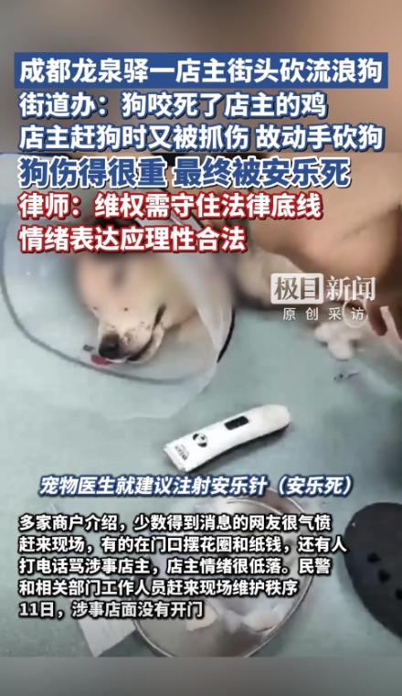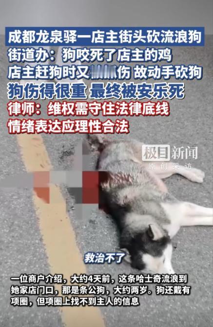 “太残忍了!”10月10日,四川成都,一条流浪狗闯进沿街一家商铺,咬死了店主的鸡,店主出来赶狗时又被抓伤了手臂,愤怒地店主直接抄起菜刀,砍断了狗的脊柱,流浪狗最终因伤势过重,被医生安乐死。网友:哈士奇也成流浪狗了吗?” 当天下午,何先生正在店里休息,突然听到院子里传来一阵鸡的惨叫,于是他赶紧跑出来查看,发现一条流浪狗正死死咬着自家的鸡,而且地上还有几只已经被咬死的,看到这里,何先生十分震惊,他赶紧想办法驱赶狗,避免损失更大。 可是狗并没有听从,他的驱赶反而让狗变得更加狂躁,在这过程中,狗抓伤了何先生的手臂,这让本就心情焦虑的店主更加愤怒。 怒火中烧的何先生,一时控制不住情绪,拿起了院子里的一把菜刀,朝着狗砍去,随着一声声惨叫,流浪狗最终倒在了地上,失去了动静。 围观的邻居和商户都赶紧报警,民警和街道办的工作人员很快赶到现场,在详细了解情况后,警察和街道办决定将受伤的狗送往附近的宠物医院,可惜由于伤势过重,医生无力回天,最终决定为这条狗安乐死。 更让人惊讶的是,仔细检查这只狗时,工作人员发现它脖子上挂着一个项圈,然而项圈上并没有主人信息,也无法找到狗的主人,这只狗很可能早已成了无家可归的流浪狗,而何先生也不得不去医院注射了狂犬疫苗,以防万一。 这场事件不仅让何先生感到愤怒与无奈,也引发了许多网友的讨论,很多人对这只狗的死感到惋惜,但也有不少人认为,狗的行为过于激烈,店主的反应也许过于极端。 在网络上,有人质疑:“哈士奇也能流浪吗?”有网友指出,许多流浪狗的来源并不单纯,它们可能是被遗弃的宠物,遗弃宠物的行为让人愤怒,应该受到更多关注。 这场狗与店主之间的冲突,也让不少人开始反思宠物的管理问题,随着城市养宠物的人越来越多,宠物的管理问题变得日益严重。 宠物主人的责任不仅仅是给宠物提供食物和住所,还应当确保宠物不对他人和社会造成威胁,而很多宠物主人却忽视了这一点,从而导致宠物成为流浪狗,甚至成为社会的潜在安全隐患。 另外,养宠物的人也要学会如何正确看管自己的宠物,避免它们跑到外面去惹祸,有些宠物如果没有受到良好的训练和管理,往往会表现出攻击性。 流浪狗的存在,尤其是那些曾经被遗弃的宠物狗,可能变得非常凶猛,而它们的行为直接影响到周围居民的安全,何先生的经历虽然是一场误会,但也给大家敲响了警钟——宠物的管理问题不容忽视。 当然,这件事情也引发了社会对于暴力和情绪管理的讨论,虽然何先生的愤怒可以理解,但他是否做得过于极端呢?有些人认为,或许可以通过其他方式将狗赶走,而不必动用菜刀。 毕竟暴力并不是解决问题的最佳途径,尤其是当它关系到生命的时候,如何在愤怒和情绪爆发时,保持冷静和理性,是每个人都需要思考的问题。 总的来说,这起事件再次让大家关注到了宠物管理和情绪控制的问题,虽然狗的死令人惋惜,但它也提醒我们,不论是宠物主人还是其他人,都要尽量避免激烈冲突,做好自己的责任,避免不必要的伤害。 对于这件事情,大家有什么看法? 信息来源:《成都一流浪哈士奇咬死家养鸡、咬伤店主后被店主砍伤,因伤势较重被安乐死,店主个人信息被挂网上,警方已介入调查》鲁中晨报