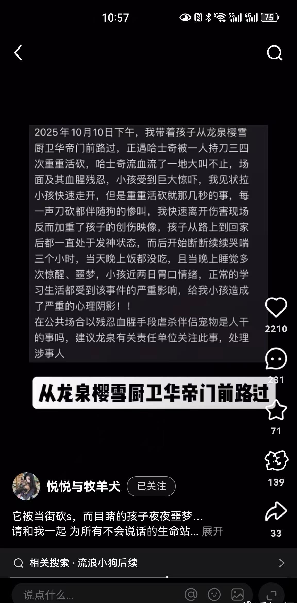 成都被砍伤哈士奇已安乐死砍狗的人好好的,没有抓痕!视频里,只看到血淋淋的狗在哀嚎!现场一根鸡毛也没有,咬死的鸡在哪?