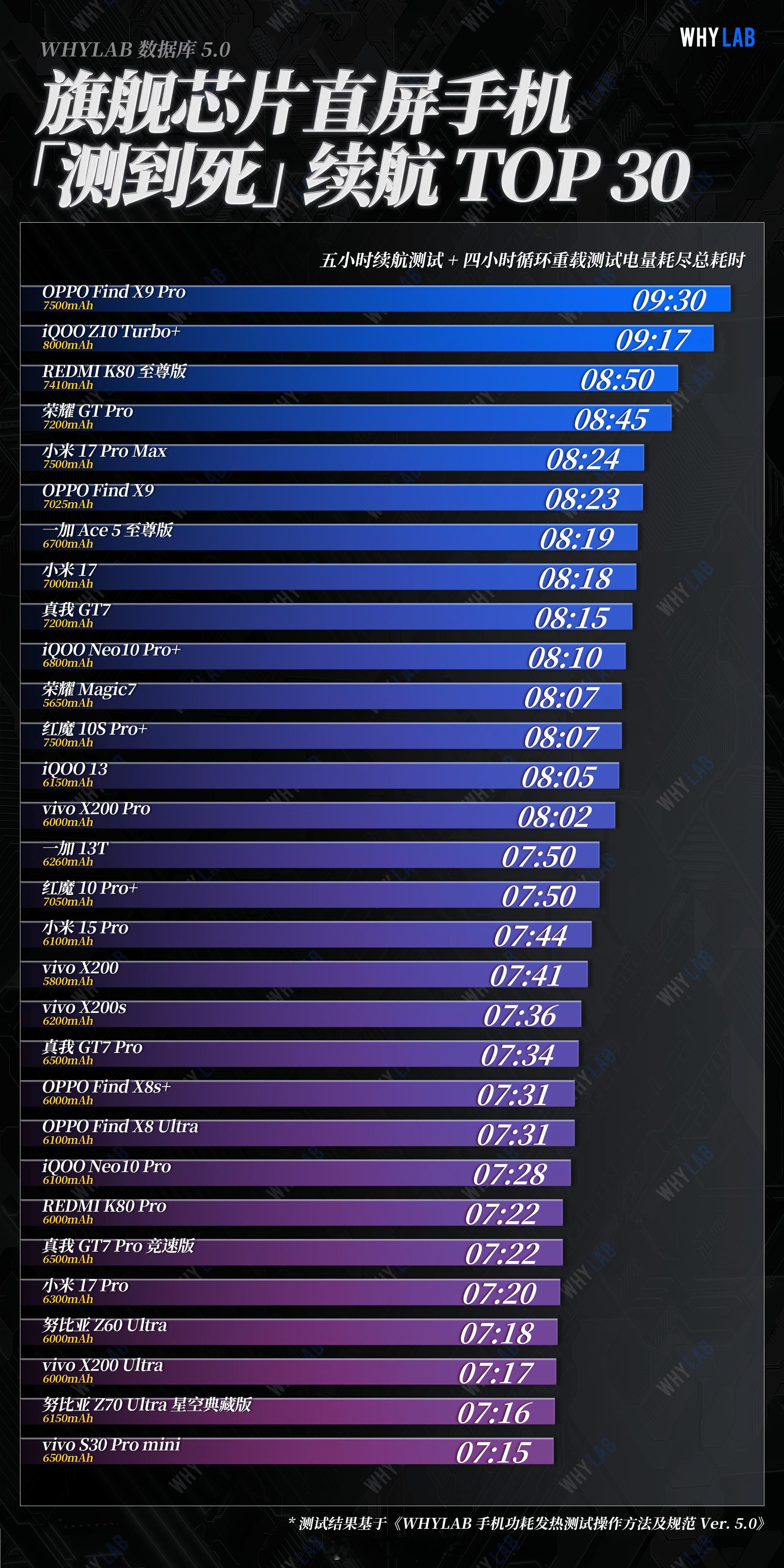 在小白测评和WHYLAB的实测里,Find X9 Pro 甚至把今年其他旗舰机甩开了一个多小时。