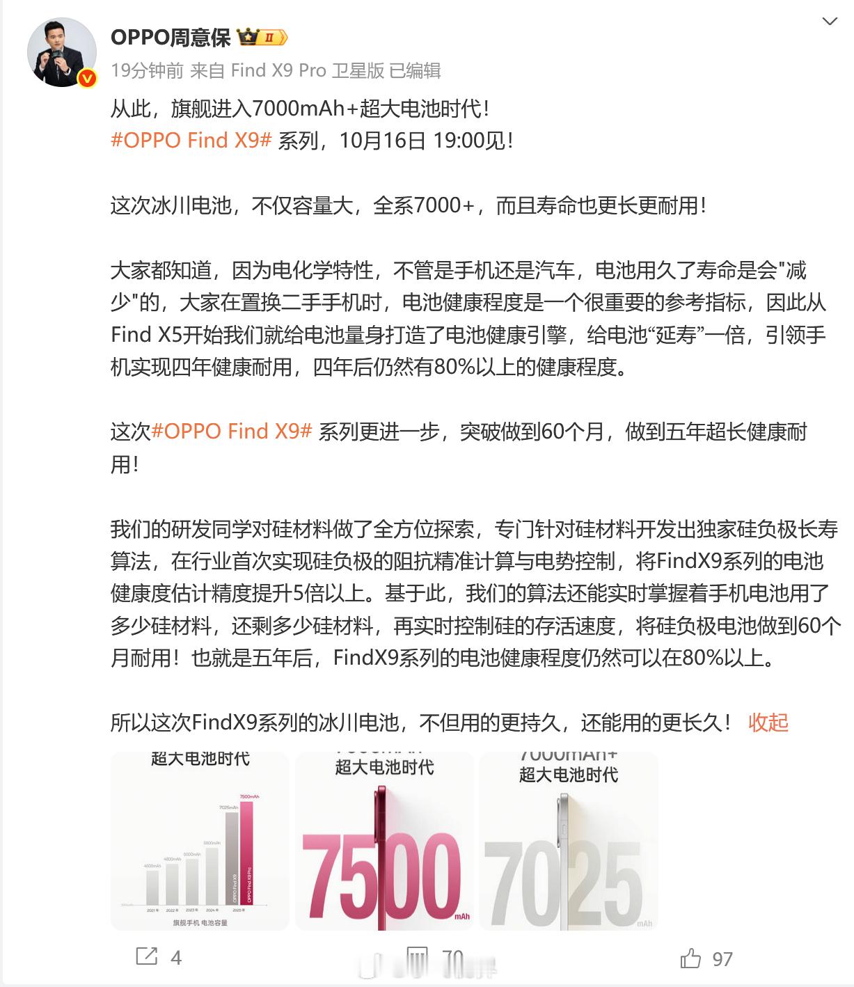 OPPO Find X9 全系7000+mAh大电池的续航成绩简直离谱,直接登顶旗舰续航第一了。