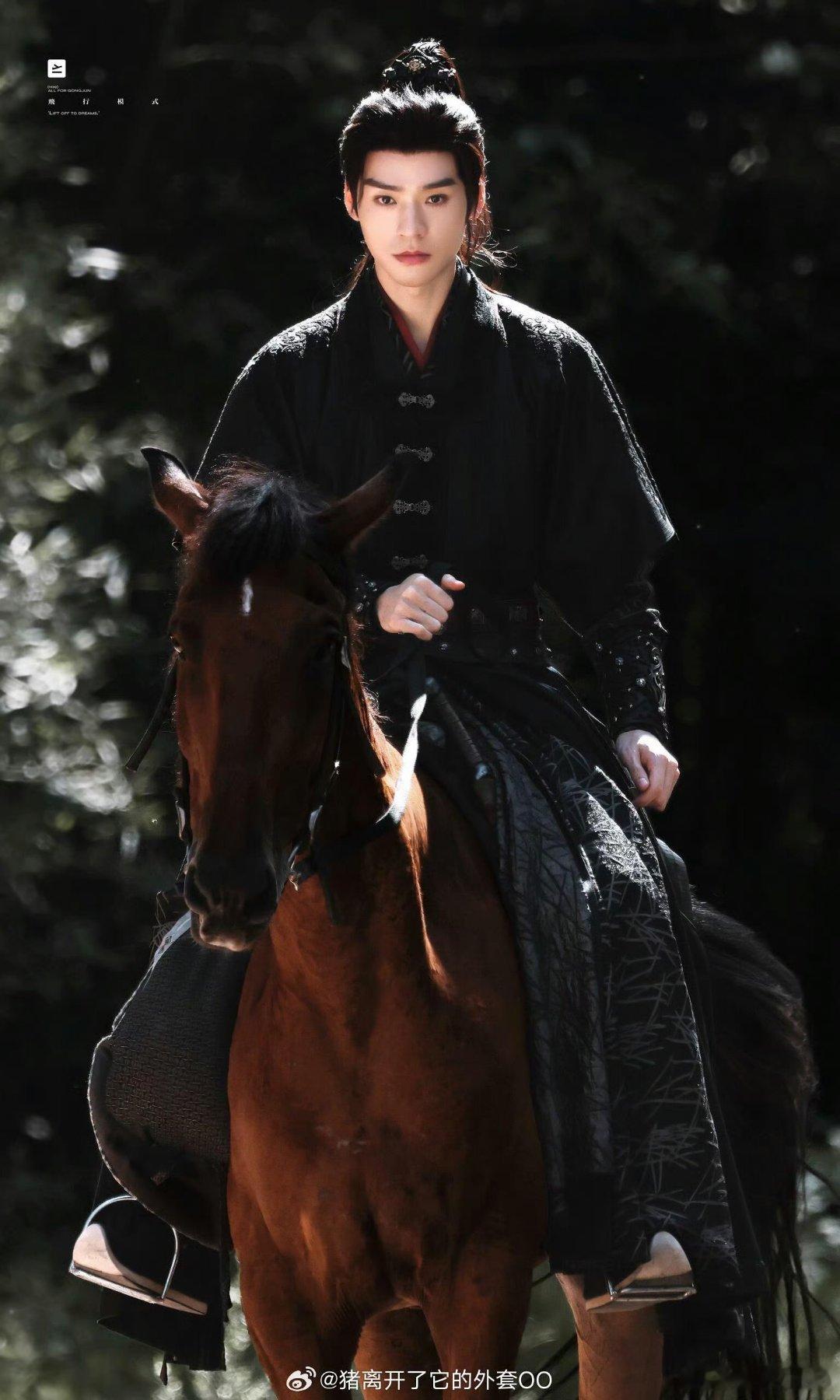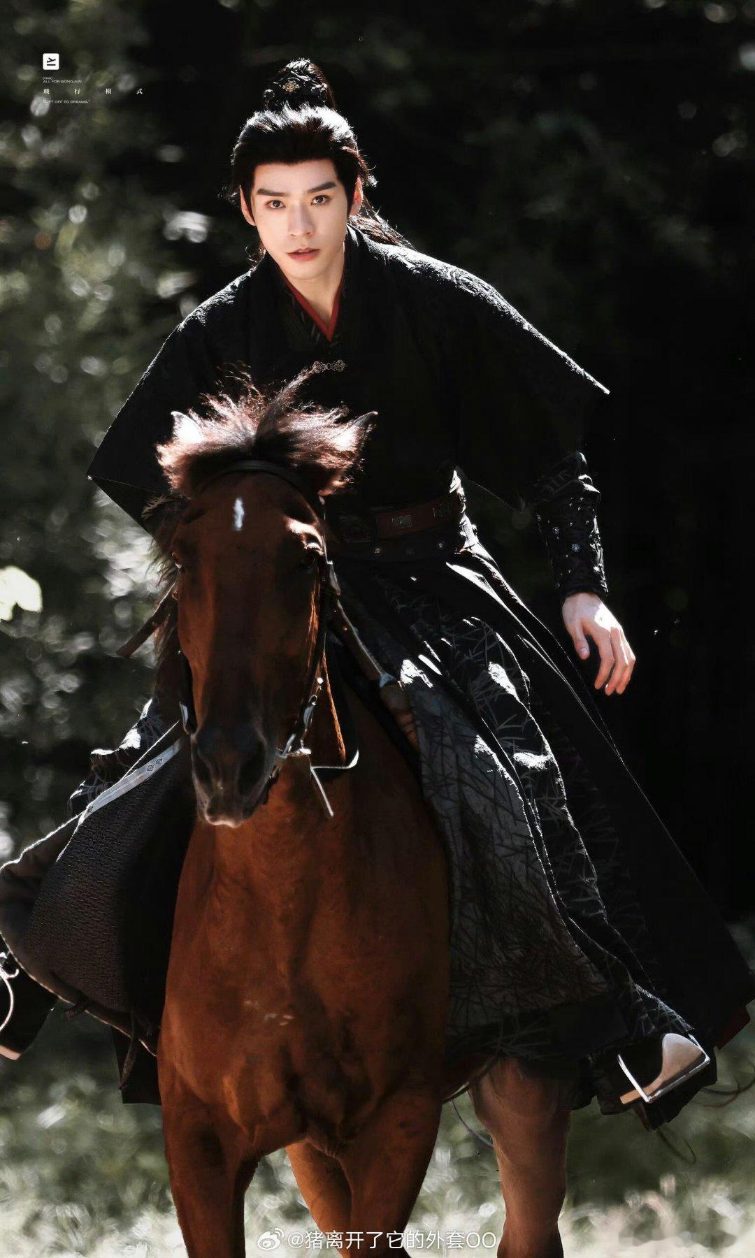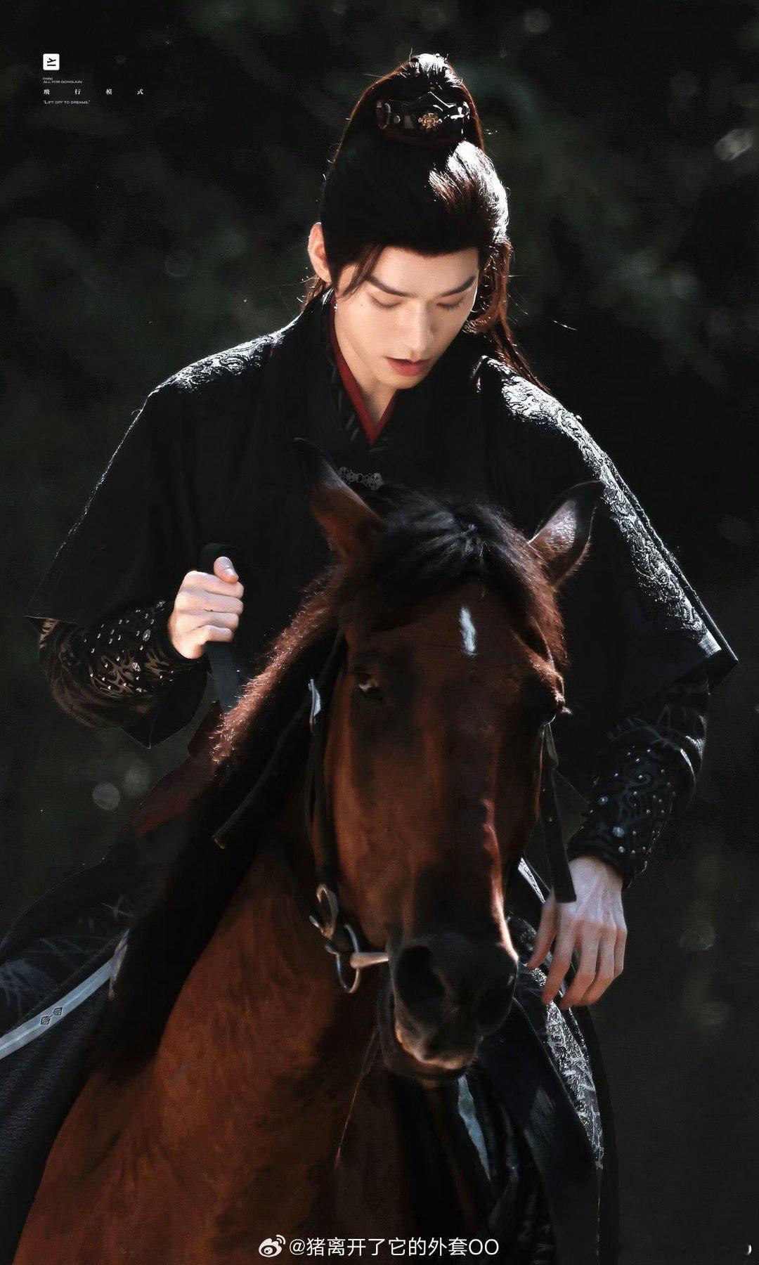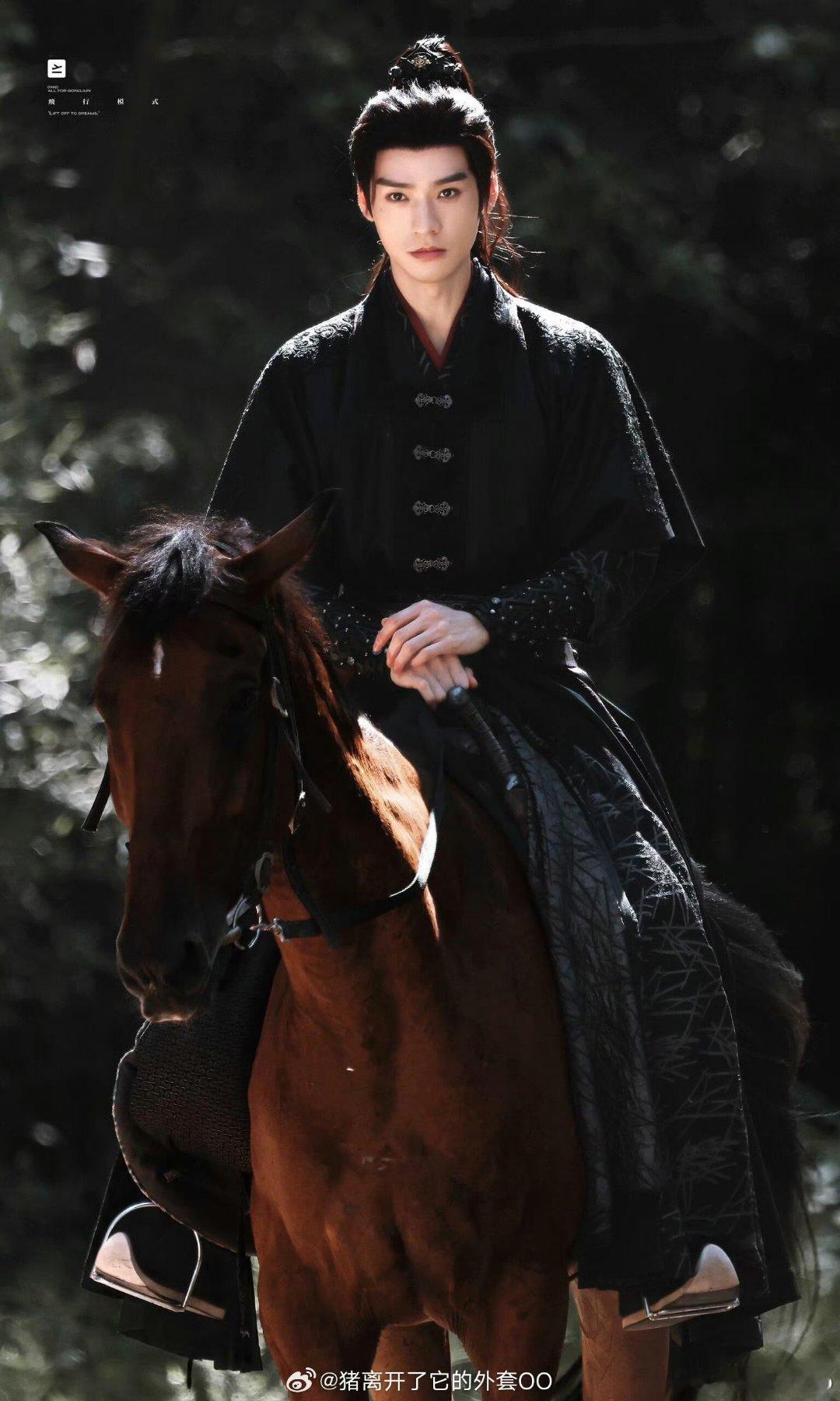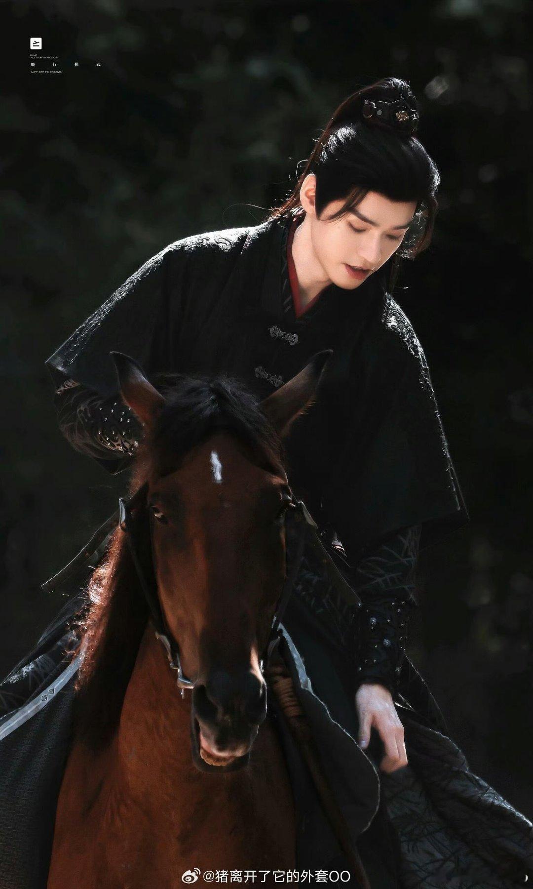 龚俊《白衣公卿》孟剑卿骑马路透图,黑衣➕高马尾造型这很帅吧!!