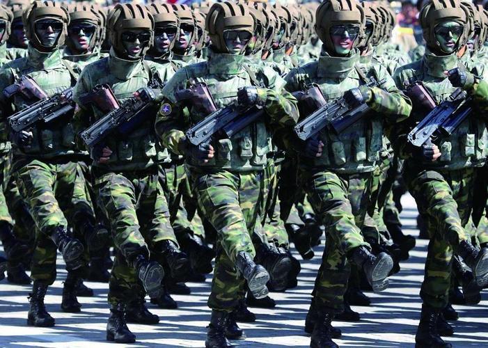 朝鲜阅兵中,持枪步兵头戴面罩、身着迷彩,步伐铿锵。面罩下眼神坚毅,新型步枪在握,