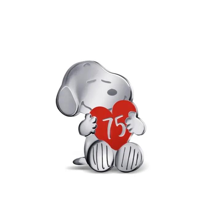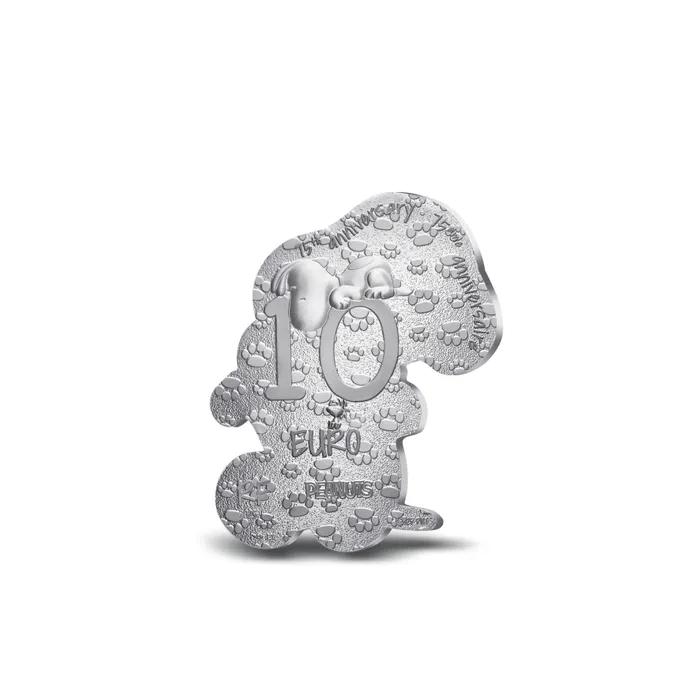巴黎造币厂发行《花生漫画》问世75周年纪念币。 这枚硬币采用了史努比最具标志性的姿态之一作为造型。这只小猎犬深情微笑,怀抱着一颗心。心形上刻有数字“75”,以纪念2025年庆祝的周年纪念日。巴黎造币厂首次推出了一款特殊形状的彩色硬币。 硬币反面以狗爪印图案为背景,史努比蜷缩在每枚硬币面值的其中一个“0”上,凝视着停在欧元符号“€”中字母“R”上的朋友伍德斯托克。此外,反面还刻有“RF”(法兰西共和国的缩写)、“Peanuts”(《花生漫画》)字样以及周年纪念标识。。