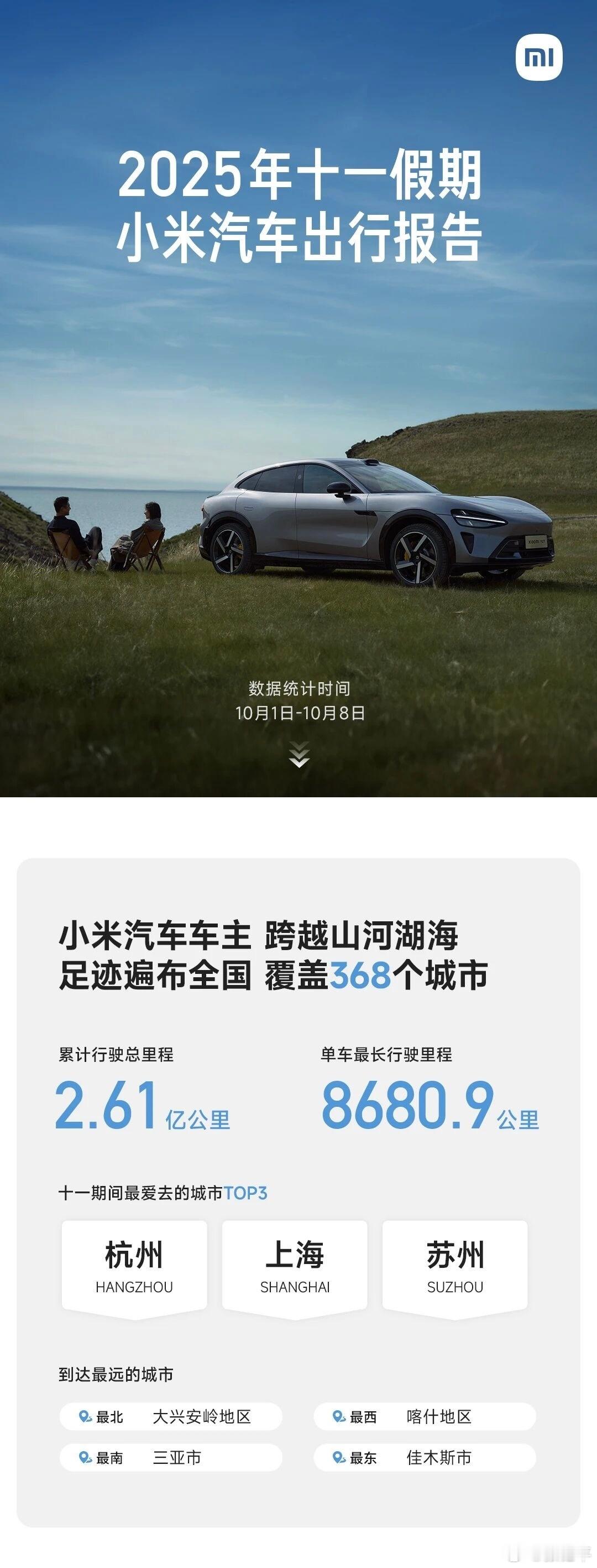 小米国庆出行报告,单车最长行驶里程8680公里,这是你吧[doge] ​​​