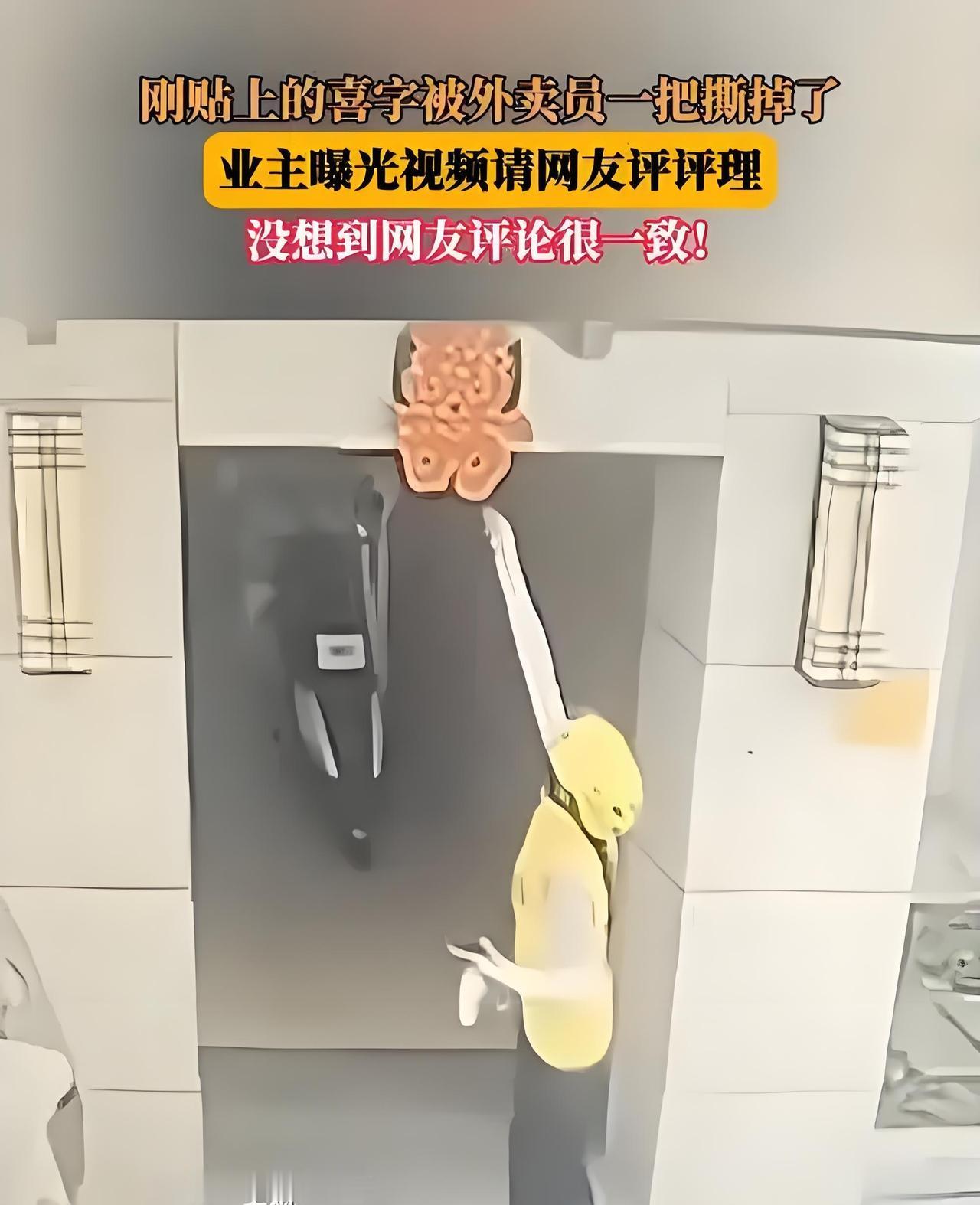 外卖员撕喜字遭曝光,网友为啥集体“唱反调”? 最近有个事儿挺热闹:一位业主发帖