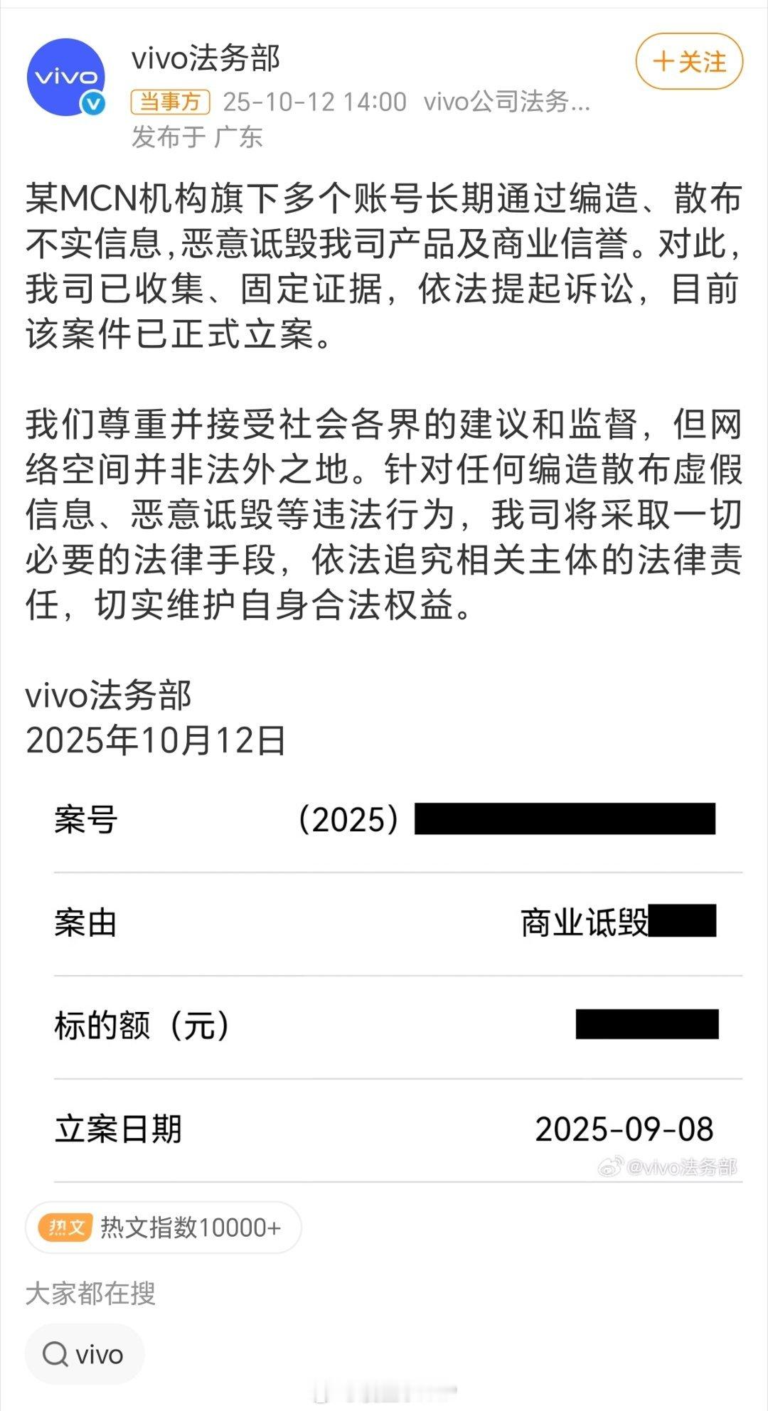 vivo法务部发文手机企业也开始维权,会是哪一家MCN机构?