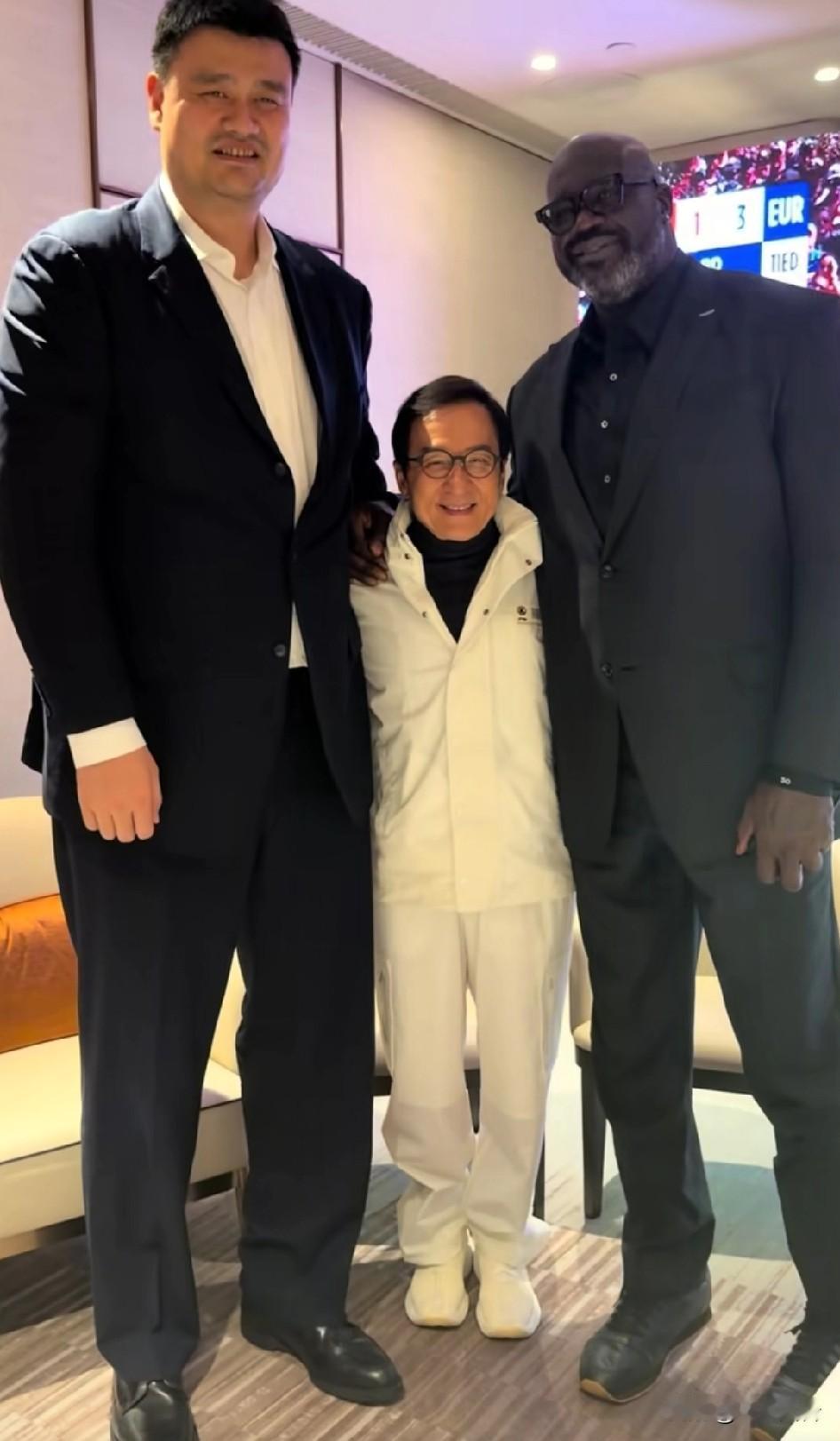 成龙:终于和NBA明星合影了! 给成龙拍成奶龙了, 姚明:听说你叫大鲨鱼?成龙年轻的时候,能不能打得过他们两个。奥尼尔掐着脖子就能把成龙提起来,成龙伸出手来连奥尼尔的头都摸不到 初看他的电影时还是斜刘海,再看已是地中海,还好最后养回来了。贝克汉姆183在他们两前居然这么娇小,成龙实际身高都没有170。都是巨人,身高才能各行各业都有巨人,只要做到行业内顶端就是巨人。