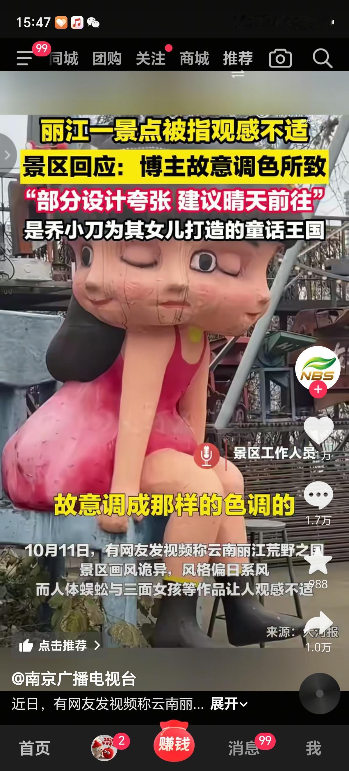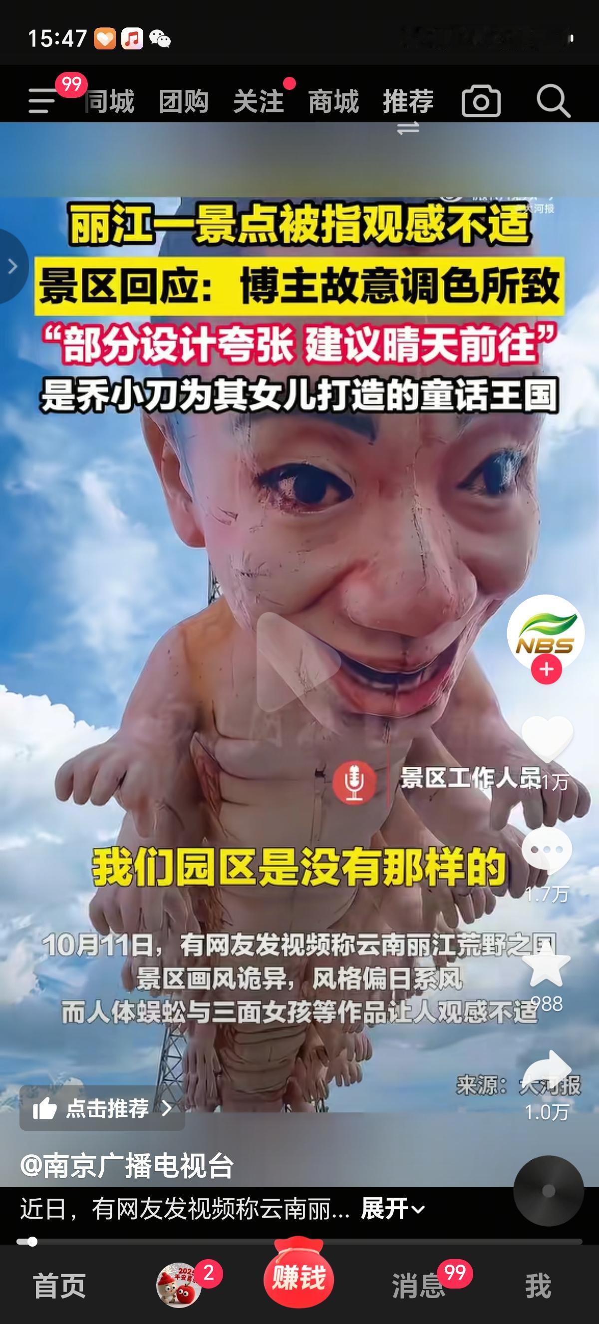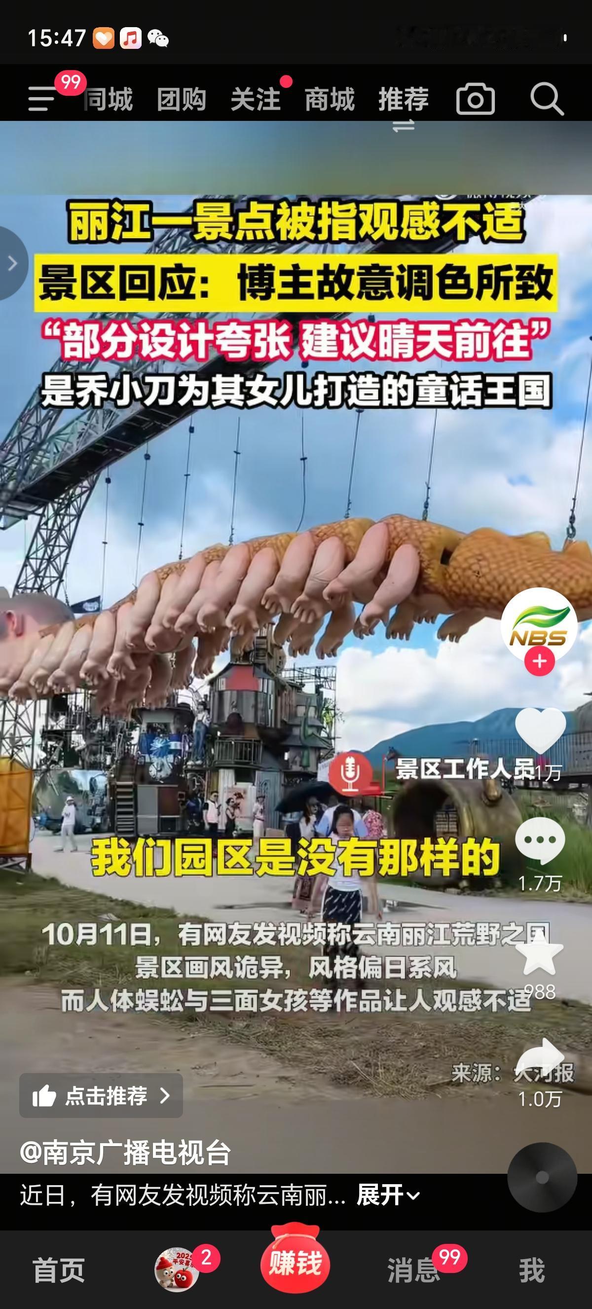 这样的景区你会带孩子去玩吗? 我自己本人挺感兴趣的,可以和好朋友一起去瞧瞧,自己可不敢去,有点慎得慌。指定不敢带孩子去,孩子胆小,怕把孩子吓哭了。 这长着人手人脑袋的千足蜈蚣太另类了,还有长满小辫子的巨大人头在路边来回漂,还有三张脸挤在一起的女孩,这真的是童话王国吗?简直是恐怖乐园啊,去玩真是刺激啊!