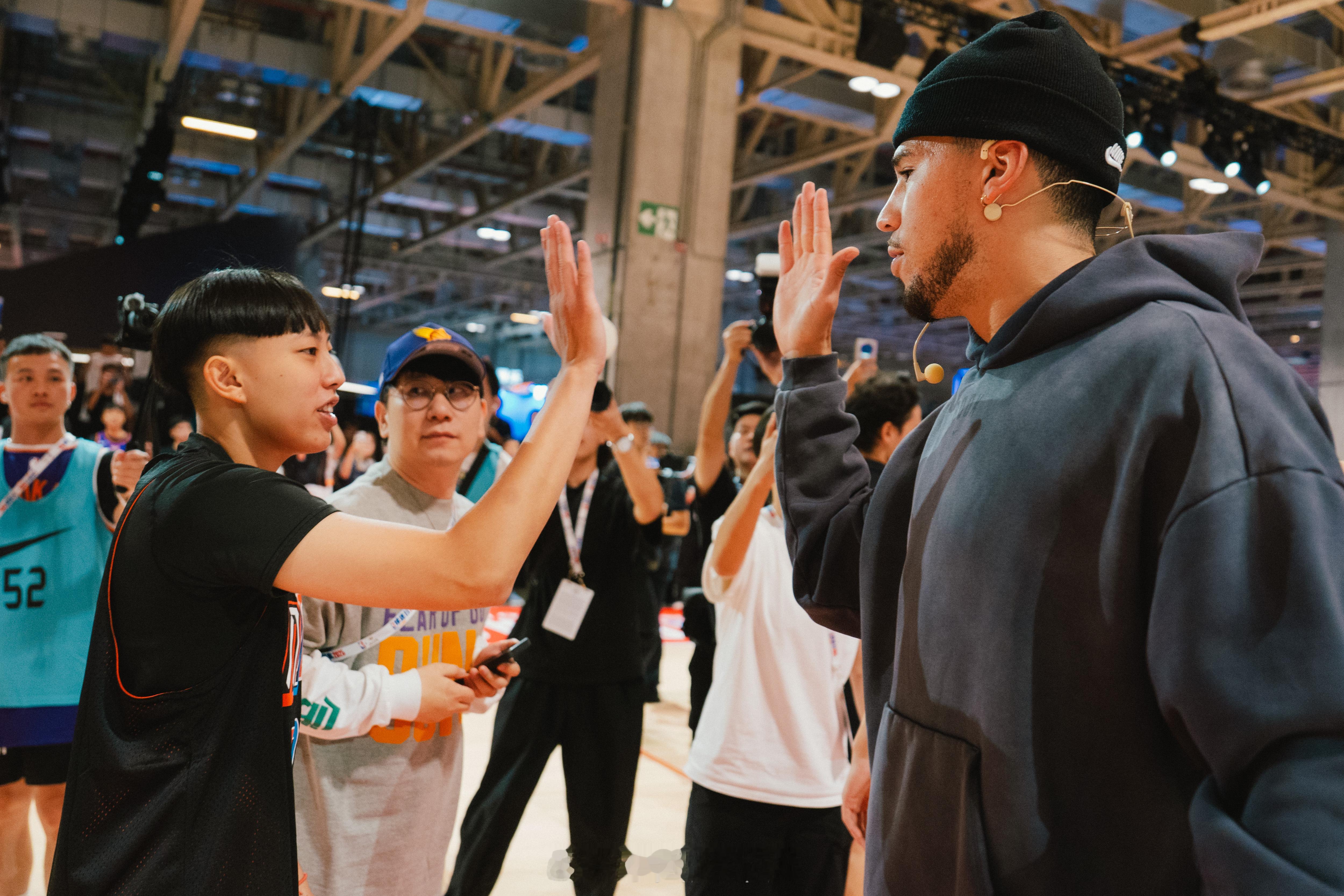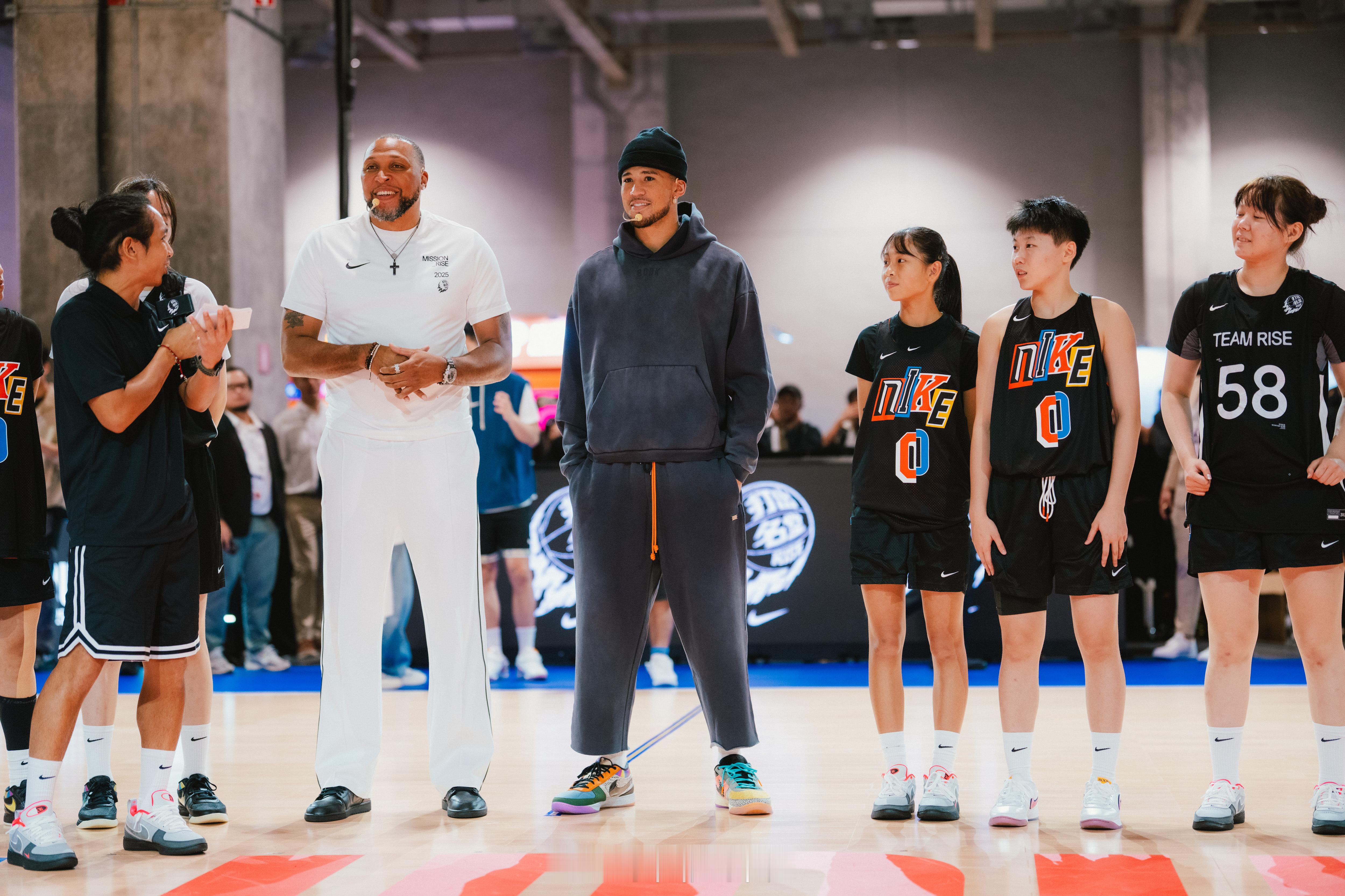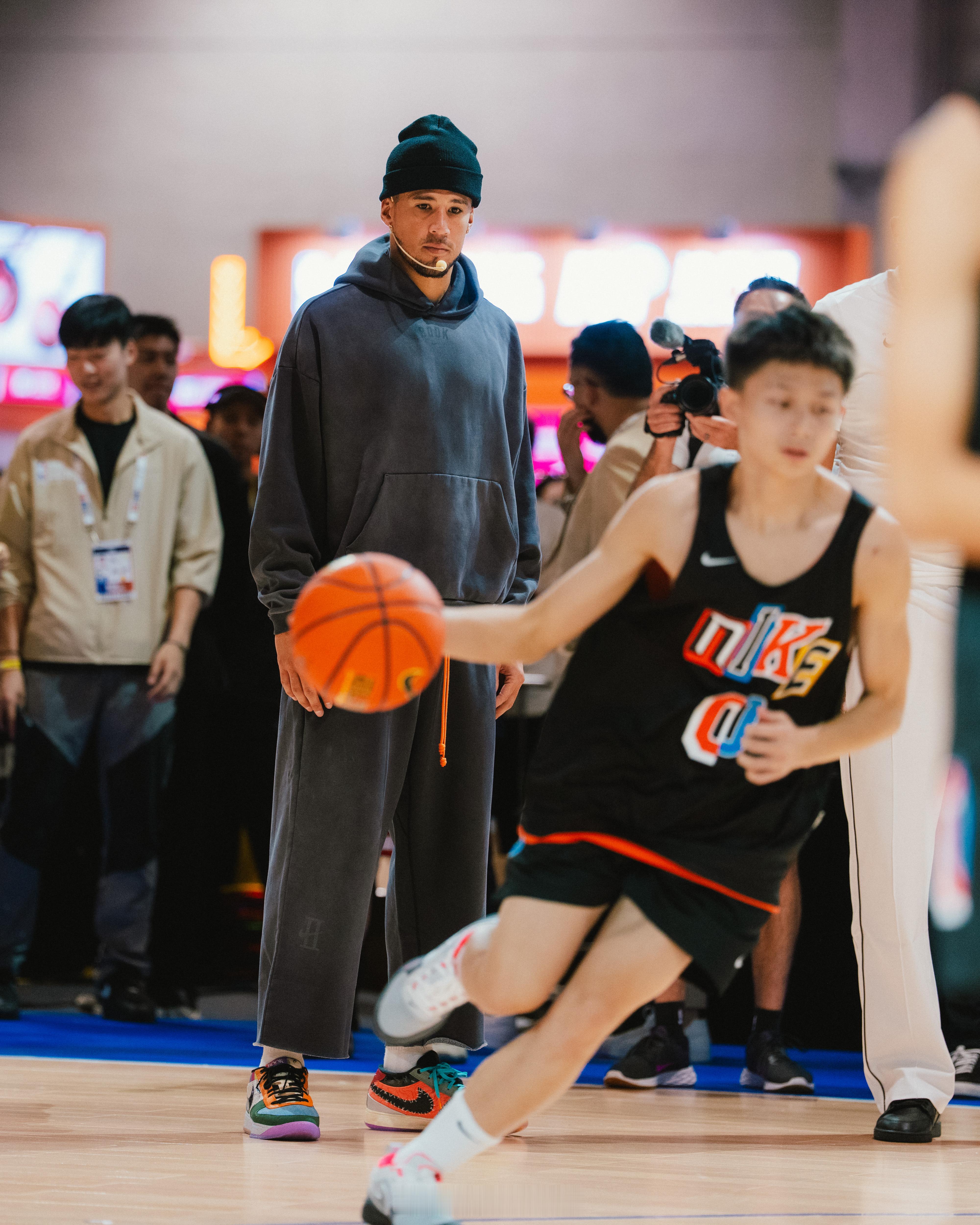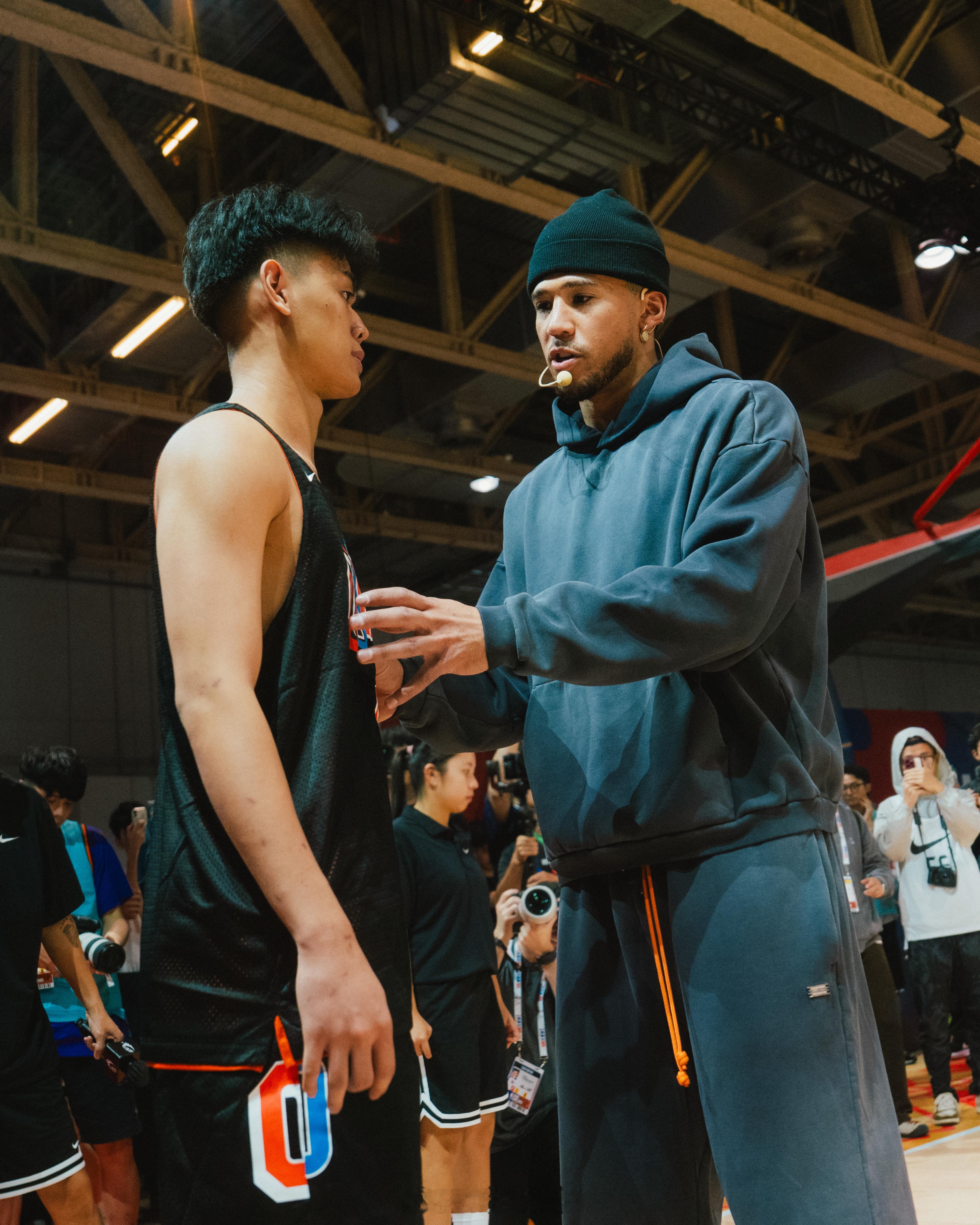 Coach Book[并不简单] 布克在球迷日现身威尼斯人的NBA HOUSE,担任教练传授16-20岁的小球员们进攻&防守技巧,他不仅全情投入,还将自己的签名鞋赠予训练营MOP。