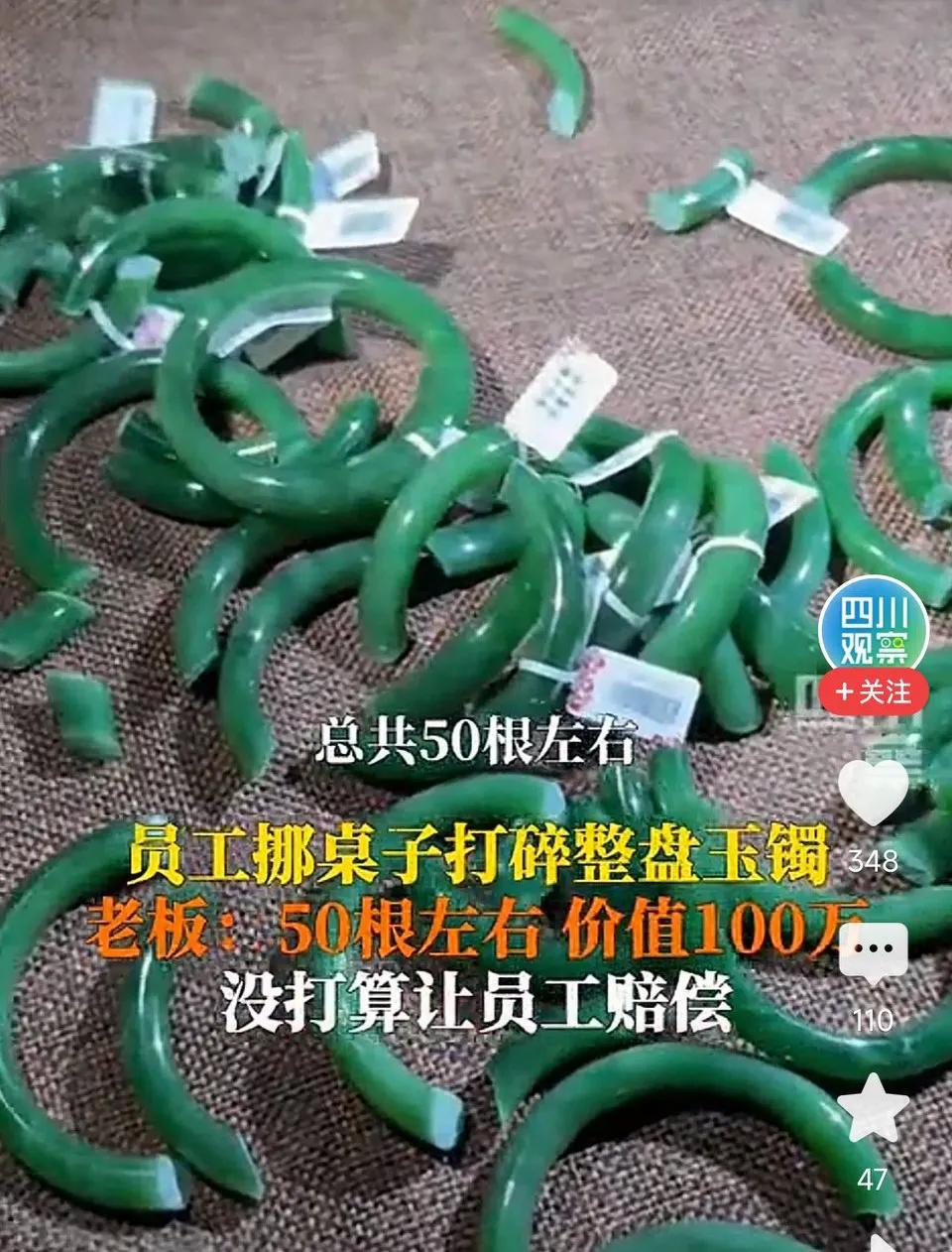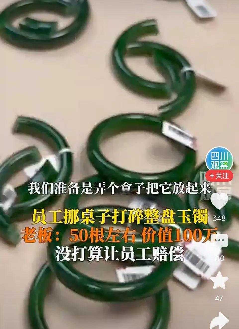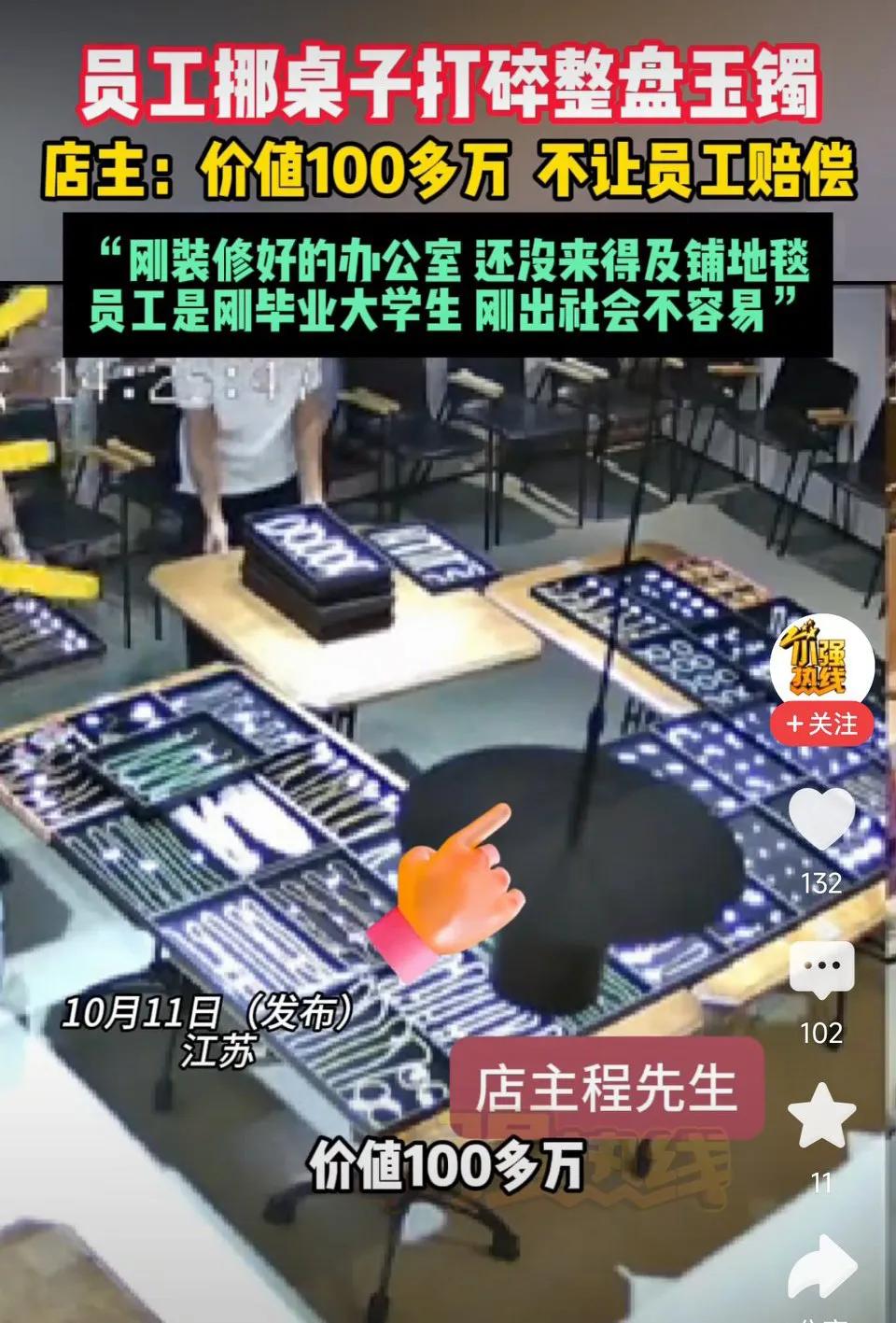江苏一员工挪桌打碎百万玉镯,店主没让赔偿:刚出社会不容易! 网友表示: 贵重的东