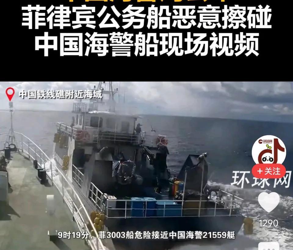 菲律宾3003船无视中方多次严正警告,危险接近中方正常维权执法的海警21559艇