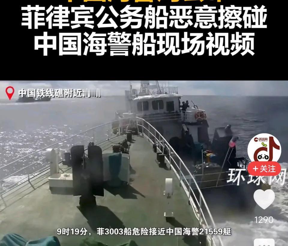 菲律宾3003船无视中方多次严正警告,危险接近中方正常维权执法的海警21559艇,导致发生擦碰。 网友表示: 小国欺负大国,这还了得,这种气焰必须压下去,没理可讲只能讲拳头! 这种事不重击一次,就会没完没了,因为对方觉得没什么事,只要对方的人力物力钱财都可以,他就会一直骚扰你。 中国需要血性了!挑衅我们几十年了!这是任何一个国家都不能容忍的! 应该按我国对待外国船只侵犯领海的惩罚标准把它扣下来,办理“承认错误”手续后再放行,确保今后不再犯入侵我国领海的错误! 人家是有准备和密谋过的,咱老是驱逐,咱船要加装重装甲的部件,要撞就撞个坚决。 你看哪个国家能靠谈判,能解决领土问题的。那要军事强大干什么呢? 一而再再而三,是可忍而孰不可忍!果断坚决处置,让菲佣感到害怕、疼痛! 菲律宾海警船 中国海警船 海警维权执法