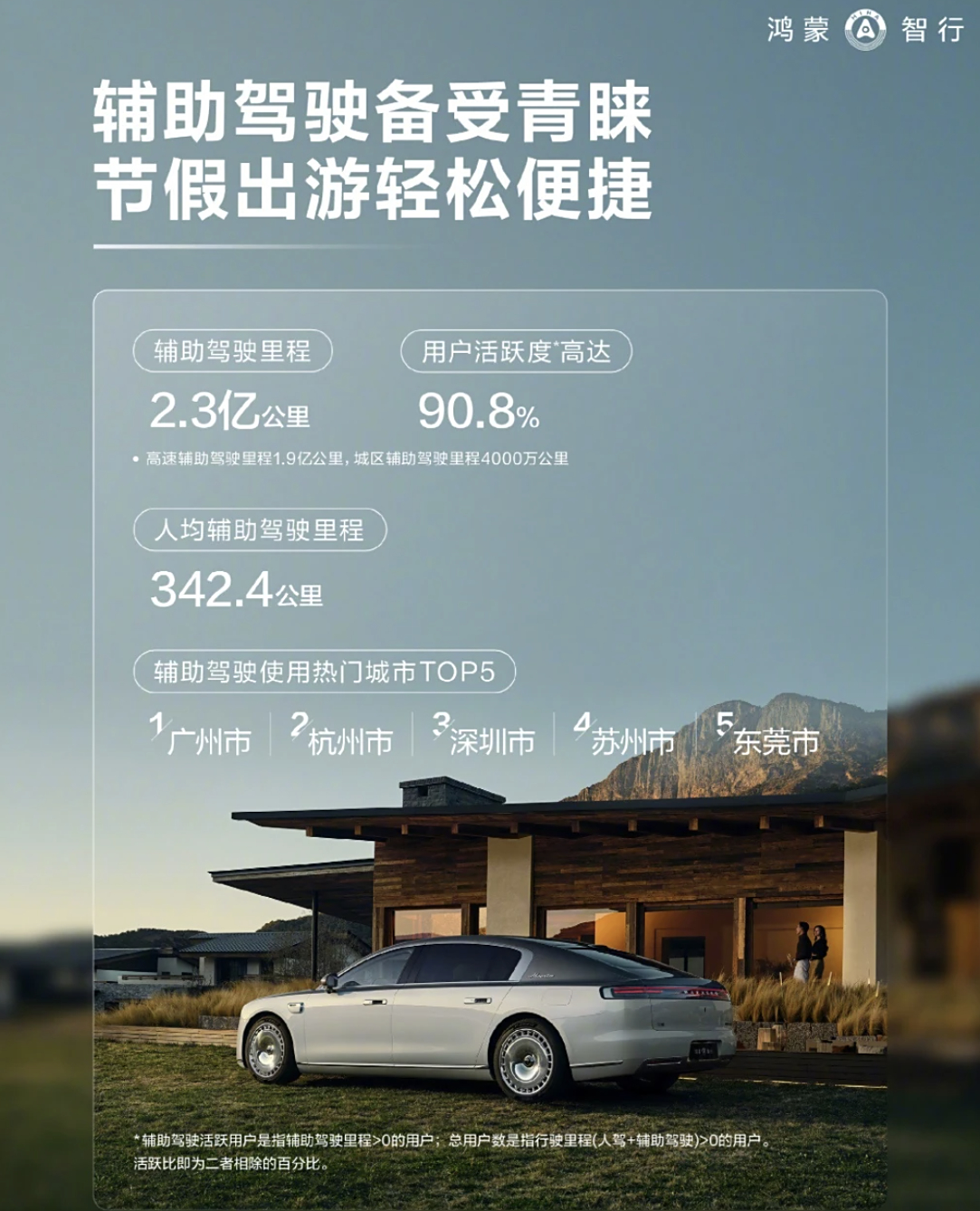 鸿蒙智行刚发了国庆假期的智驾使用报告: