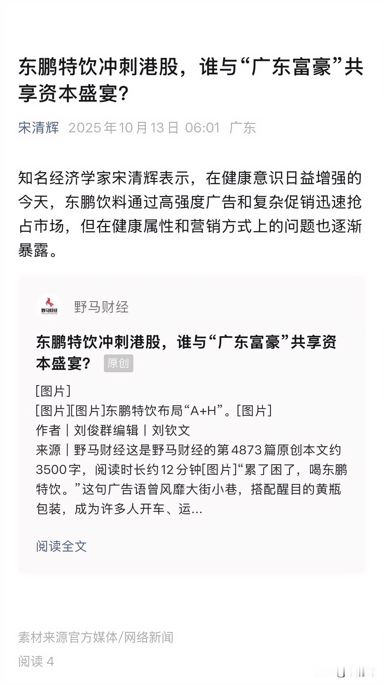 知名经济学家宋清辉表示,在健康意识日益增强的今天,东鹏饮料通过高强度广告和复杂促